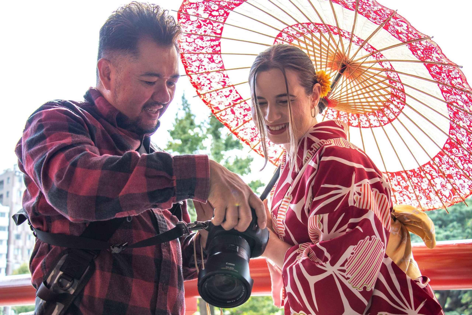 Oplev en uforglemmelig fototur gennem de livlige gader i Asakusa, hvor tradition og modernitet mødes i perfekt harmoni. Start din dag tidligt kl. 8.30 for at tage smukke billeder uden mange mennesker i et område, der bliver travlt senere på dagen. Denne unikke tur giver dig mulighed for at klæde dig i en autentisk kimono (eller yukata om sommeren), komplet med frisure og tilbehør til kvinder, så du kan fordybe dig fuldt ud i japansk kultur. Med en lokalkendt guide, som også er din fotograf, udforsker du både must-see steder og skjulte perler og lærer om Asakusas rige historie, mens du går.