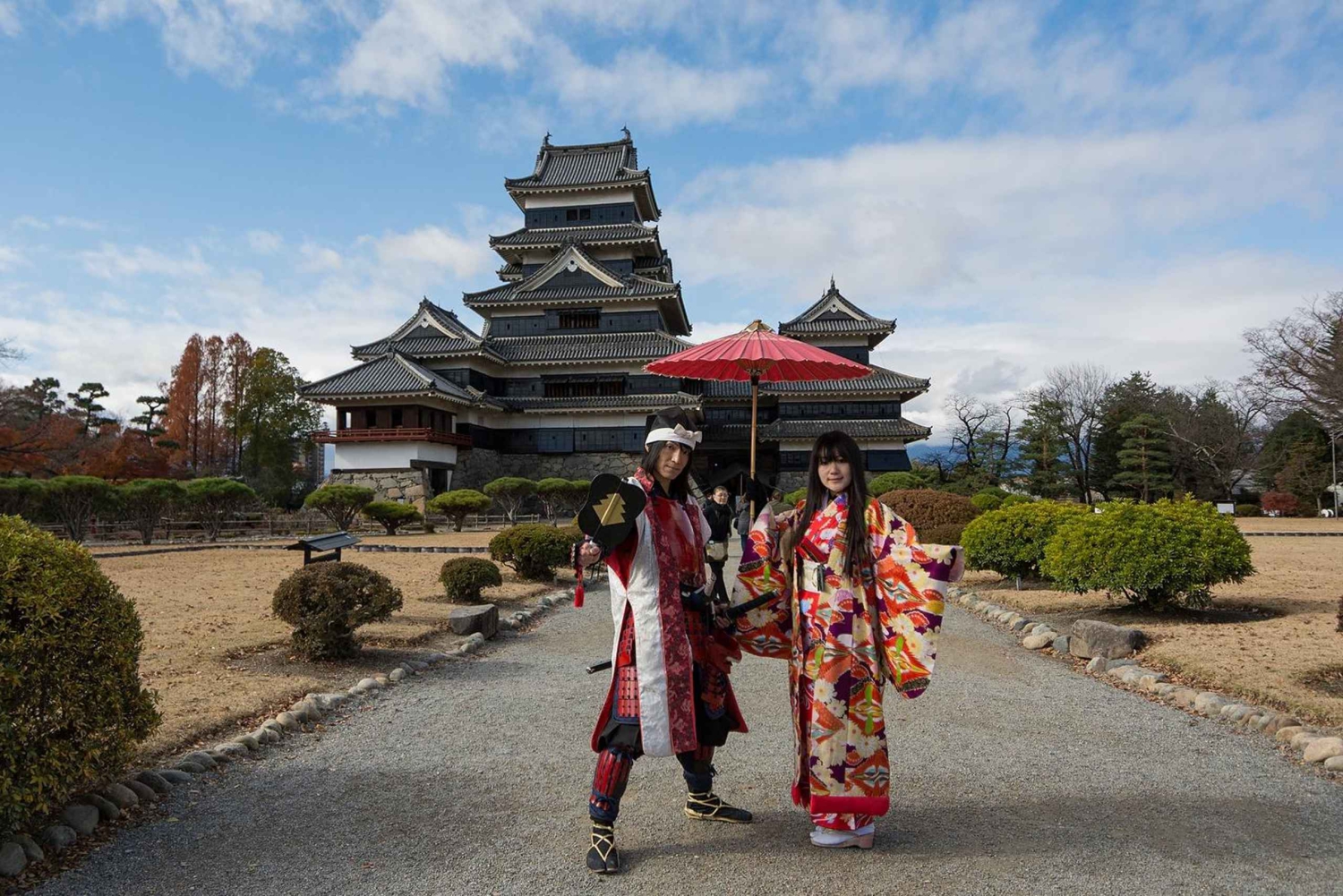 Din rejse kan også omfatte et besøg i Matsumoto, en by der blander moderne charme med dybe historiske rødder. Den største attraktion her er Matsumoto Slot, også kendt som 'Krage Slot' på grund af sin markante sorte facade. Det er et af Japans ældste bevarede slotte og tilbyder panoramaudsigt over de omkringliggende japanske alper fra øverste etage. Indenfor kan du lære om feudale forsvarsstrategier og samurai-historie.