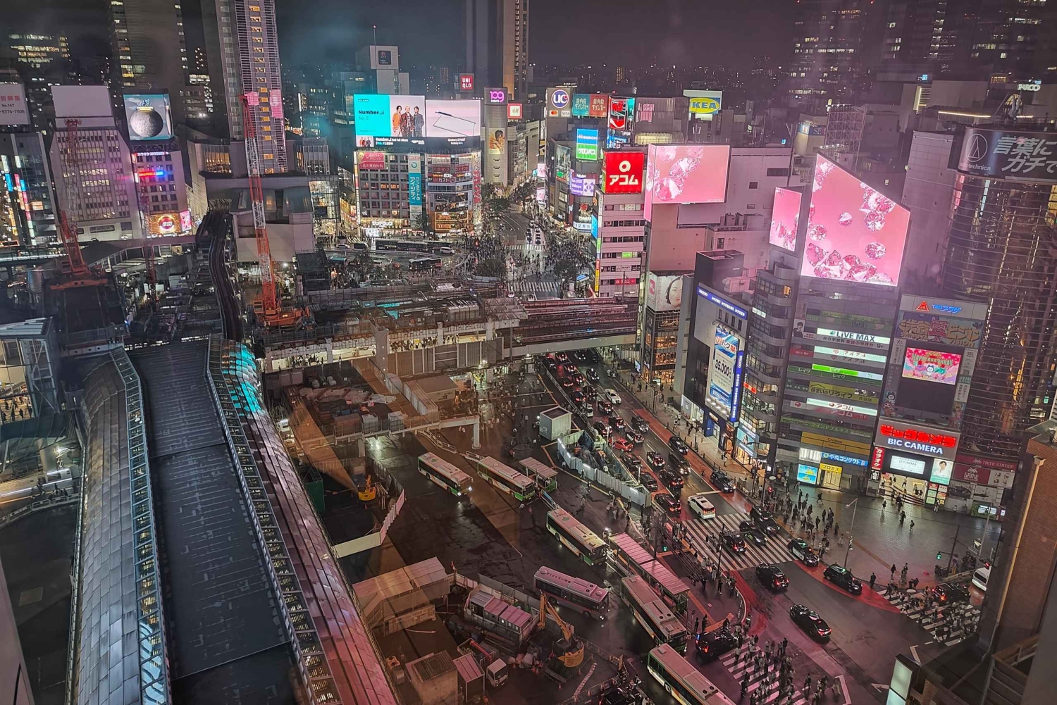 Tokyo: Shibuya-byvandring om aftenen med udsigt over byen fra tagterrassen
