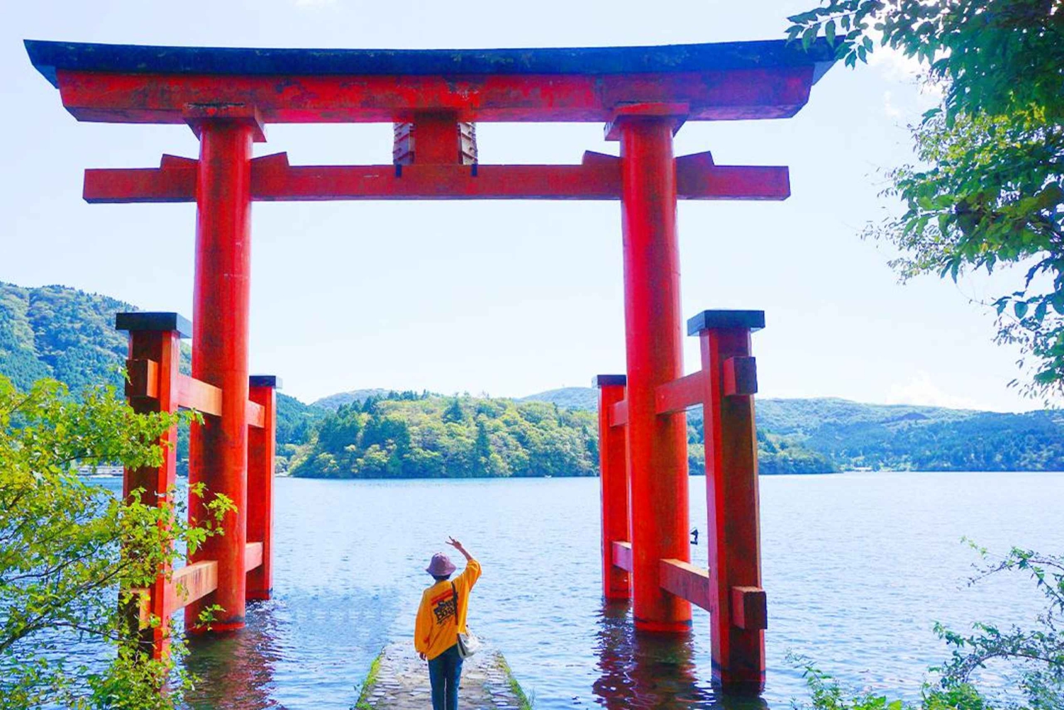 Entdecke die Schönheit des Fuji-Hakone-Gebiets. Nimm die Hakone-Seilbahn für atemberaubende Ausblicke auf Vulkane und Seen, erkunde das friedliche Oshino Hakkai und segle mit einem Piratenschiff mit Blick auf das Torii-Tor und den Fuji.