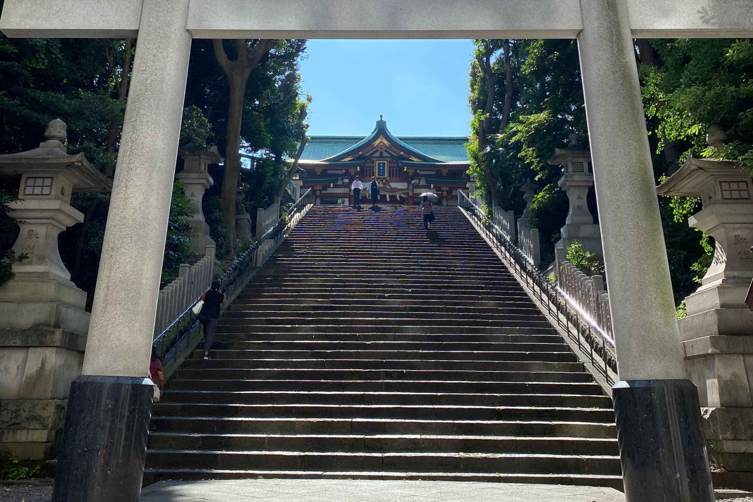 Als Nächstes besuchst du den Hie-Schrein, einen berühmten Kraftort für beruflichen Erfolg und Heiratsvermittlung, der nur einen Steinwurf vom National Diet Building entfernt liegt. Der Schrein ist berühmt für seine Wächter-Affenstatuen am Tor und in der Haupthalle sowie für Affenmotive auf Votivtafeln und Amuletten. Verpasse auf keinen Fall die 'Tausend Torii-Tore', die an den berühmten Fushimi-Inari-Schrein erinnern.