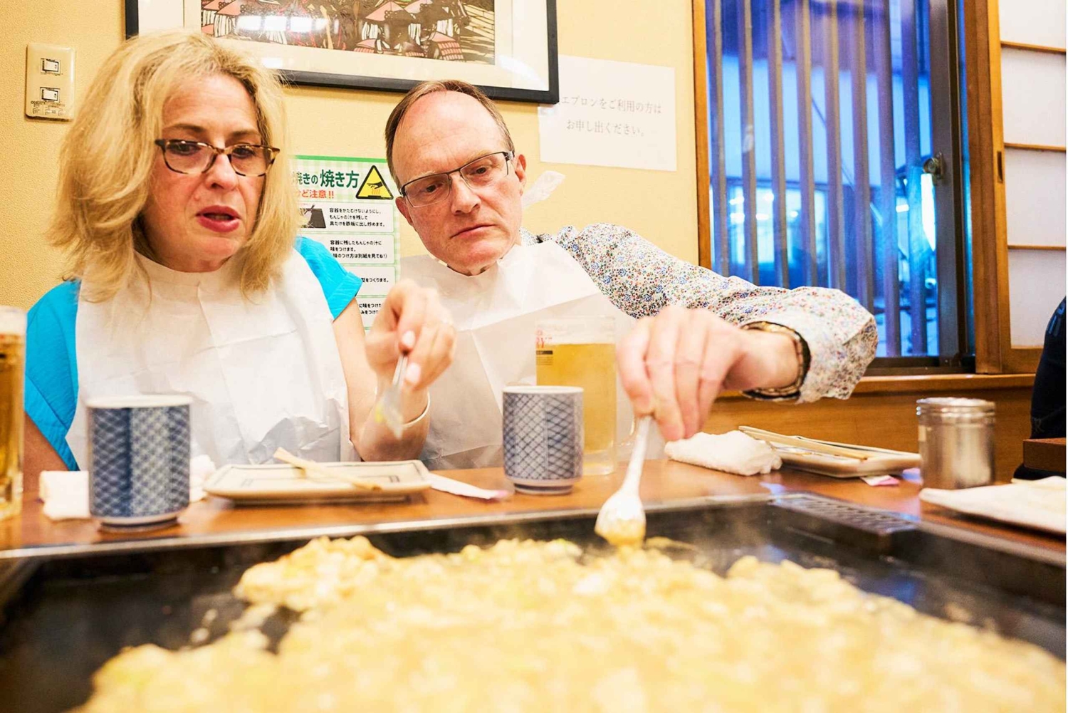 Erlebe Japans vielfältige Esskultur in Asakusa! Besuche ein bei Einheimischen beliebtes Restaurant mit Sake-Bar und genieße 12 einzigartige Gerichte wie Monjayaki (herzhafte Pfannkuchen), die das Seelenessen des alten Stadtzentrums von Tokio sind, Yakisoba (japanische gebratene Nudeln), Conbini-Eis usw.! Eine tolle Gelegenheit, unterwegs andere Reisende zu treffen.