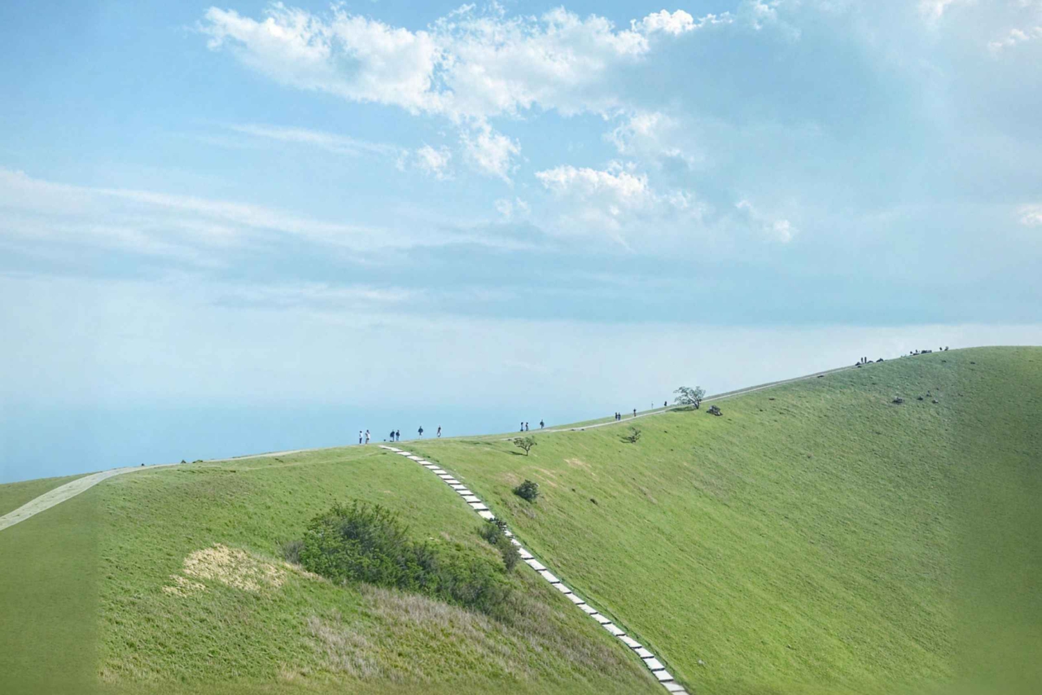 Alle an Bord! Wir steigen am Bahnhof Izu-Kogen in die malerische Izu Kyuko Line und fahren bis zum Bahnhof Izu-Inatori. Diese kurze 25-minütige Fahrt ist ein echter Augenschmaus, denn durch die großen Fenster hast du einen ununterbrochenen, atemberaubenden Blick auf den Pazifischen Ozean, während wir an der Küste entlangfahren. Dein Zugticket ist bereits inklusive, also kannst du dich einfach zurücklehnen und ein paar Fotos machen!