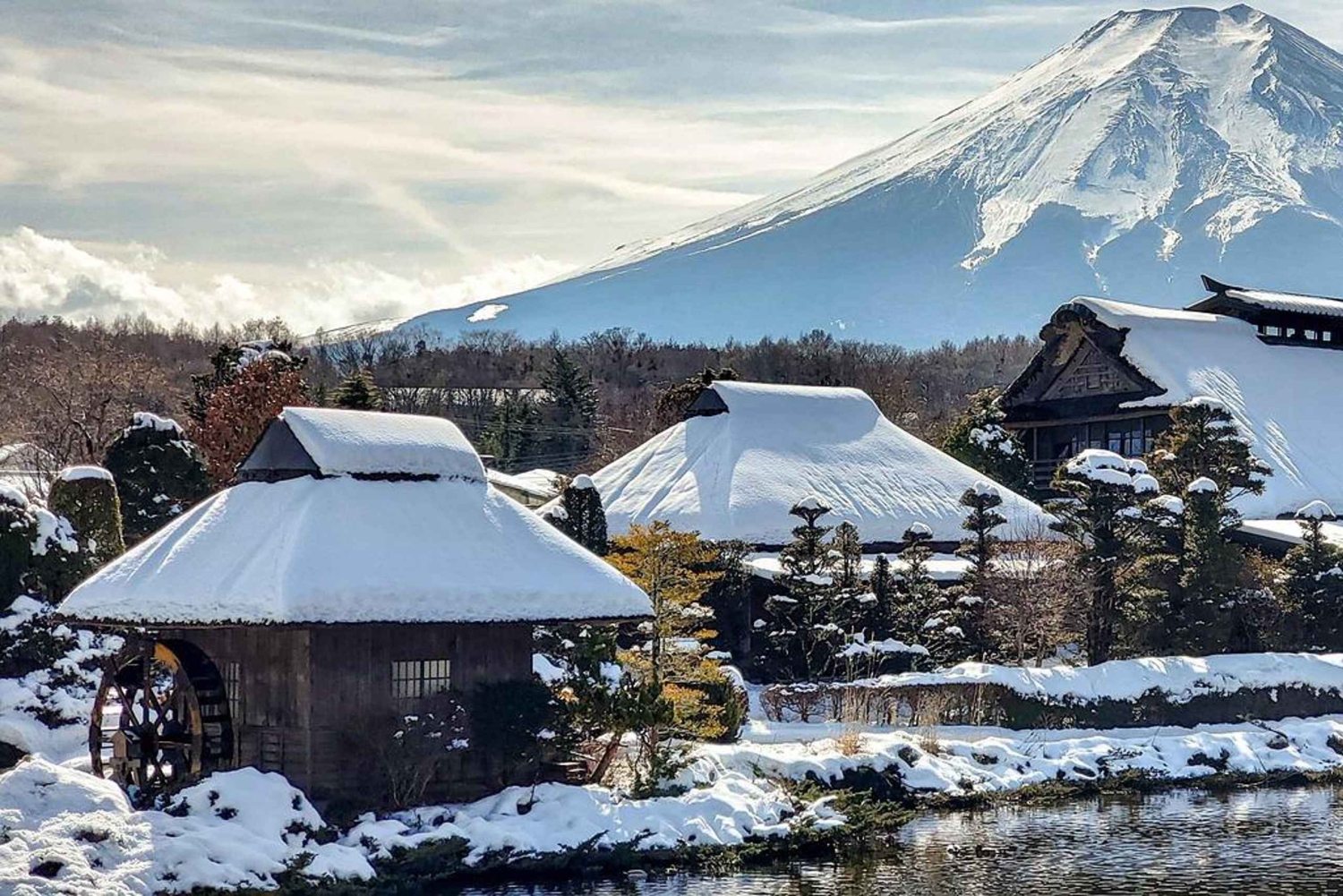Besuche die 5. Station des Fuji, den nächstgelegenen, mit dem Fahrzeug erreichbaren Punkt, und genieße einen atemberaubenden Blick auf die Berge. Weiter geht's zum Arakurayama Sengen Park, wo die berühmte rote Pagode den Fuji für eines der berühmtesten Fotos Japans umrahmt. Am Yamanaka-See kannst du einen entspannten Spaziergang am Ufer entlang machen, bevor es weitergeht nach Oshino Hakkai, einem charmanten Dorf mit kristallklaren Teichen und traditionellen Strohdachhäusern.