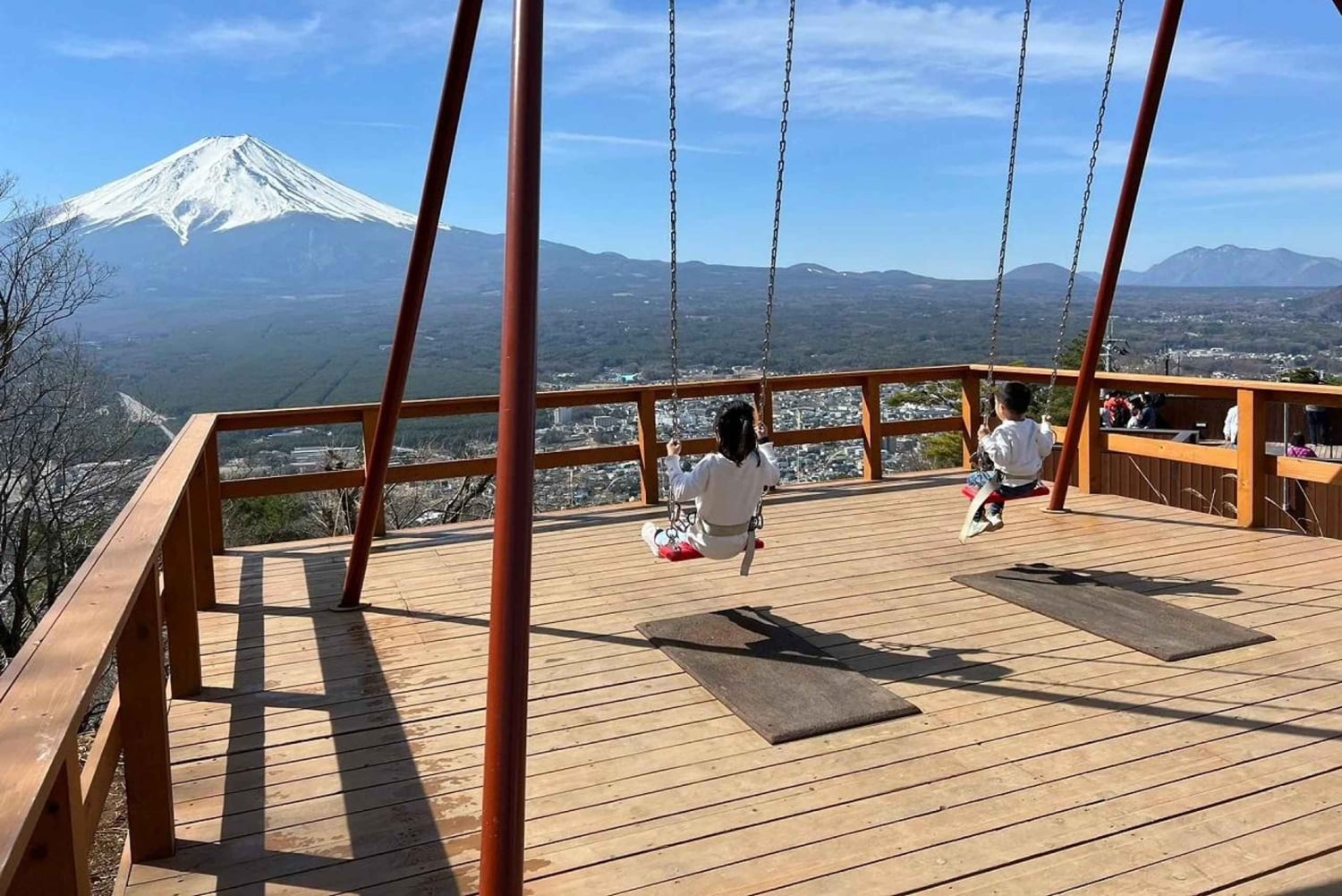 Acércate al monte Fuji en esta excursión de un día. Sube al teleférico panorámico, participa en una experiencia de elaboración de matcha y haz fotos emblemáticas en el Fuji-view Lawson. Termina con un tranquilo paseo por Oshino Hakkai.