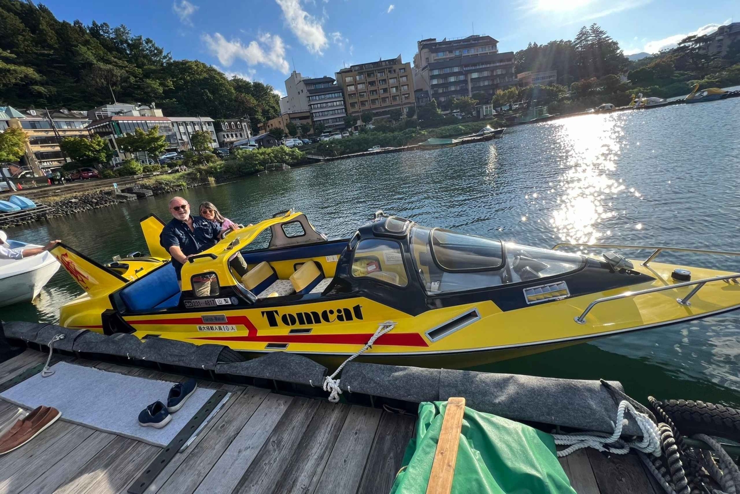 - Dirígete al lago Kawaguchiko para disfrutar de un emocionante paseo en barco y una panorámica por el camino de la cuerda.
