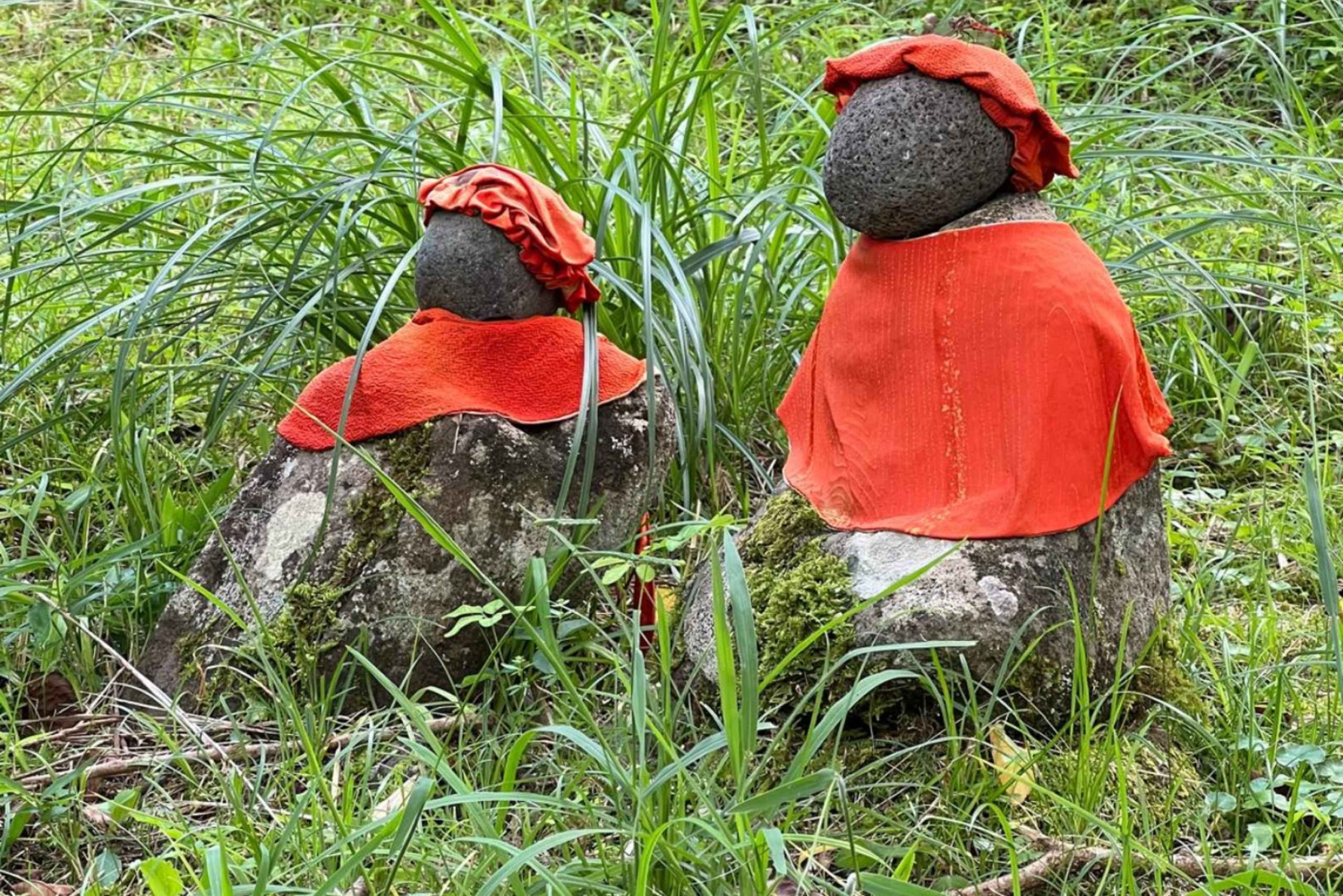 Continúa hacia el Narabi Jizo, una colección de estatuas Jizo hechas a imagen de Jizo Bosatsu, la deidad guardiana de los niños y los viajeros. También se les conoce como 'portadores de la tierra', por lo que las estatuas jizo están hechas de piedra, a la que se atribuye un poder espiritual de protección y longevidad anterior a las creencias budistas.