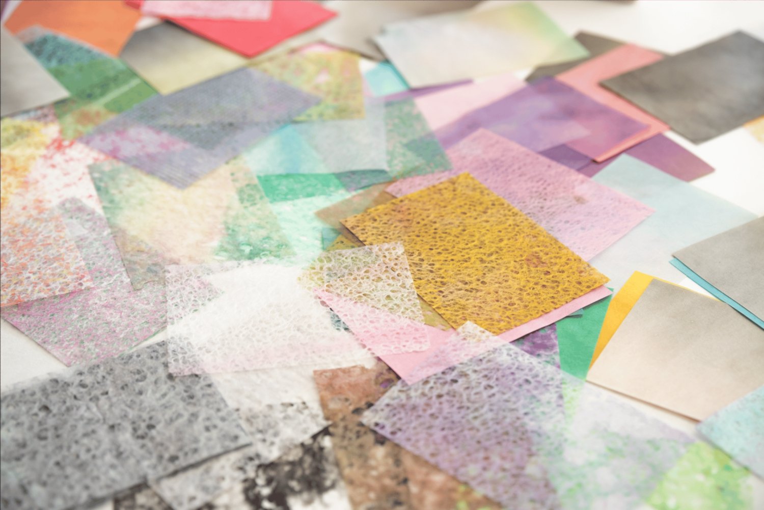 [Värillinen paperisuunnitelma]-kurssilla teet oman postikortin kokoisen washi-paperin ja kerrostat sen päälle kaunista washi-paperia nimeltä 'Rakusuishi'.