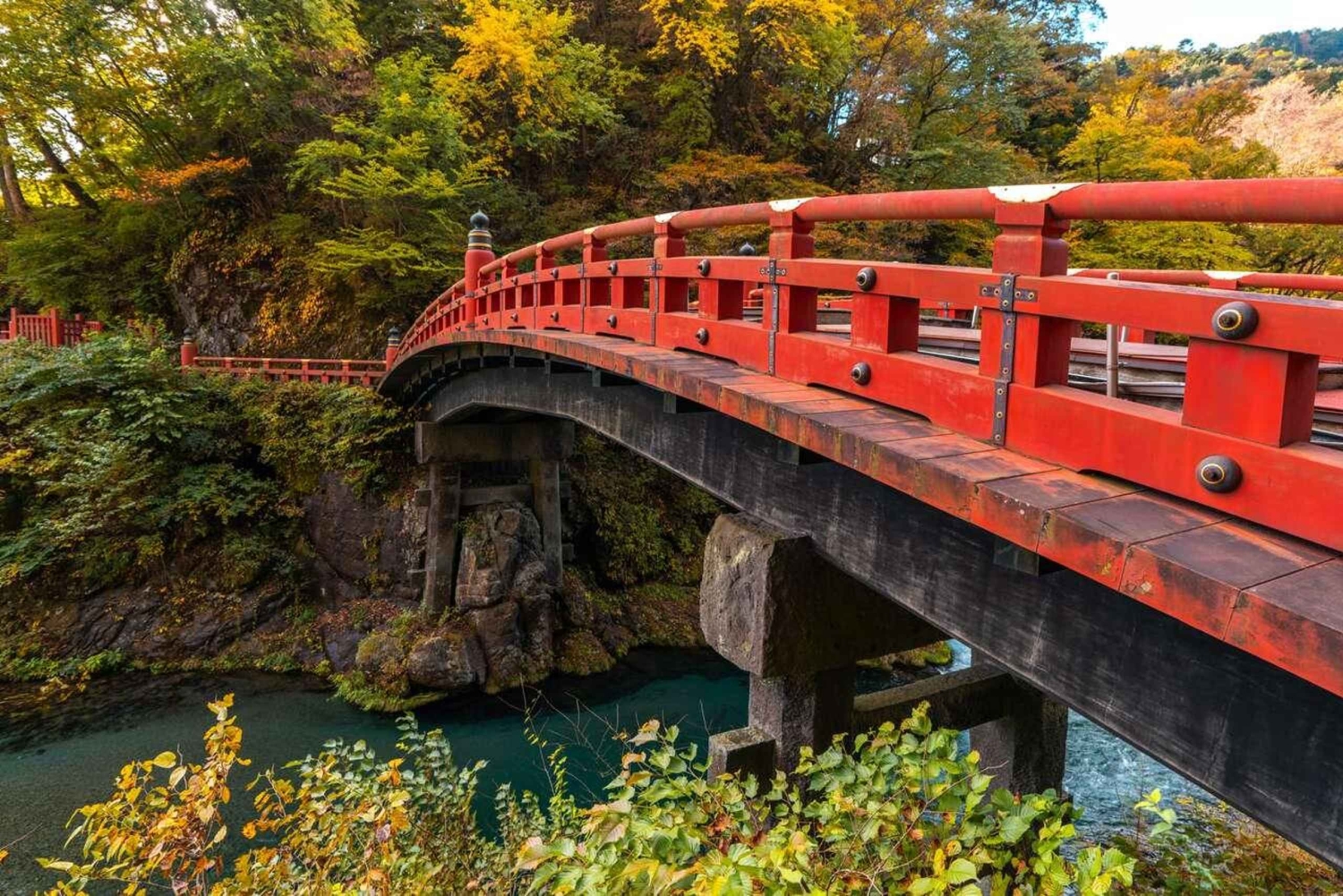 Commencez votre exploration au sanctuaire Toshogu, classé au patrimoine mondial de l'UNESCO, un complexe magnifiquement préservé, entouré de forêts de cèdres et connu pour ses sculptures ornées et son architecture vibrante. Poursuivez votre route vers l'emblématique pont Shinkyo, l'un des lieux d'intérêt les plus photographiés du Japon, pour un arrêt photo mémorable.