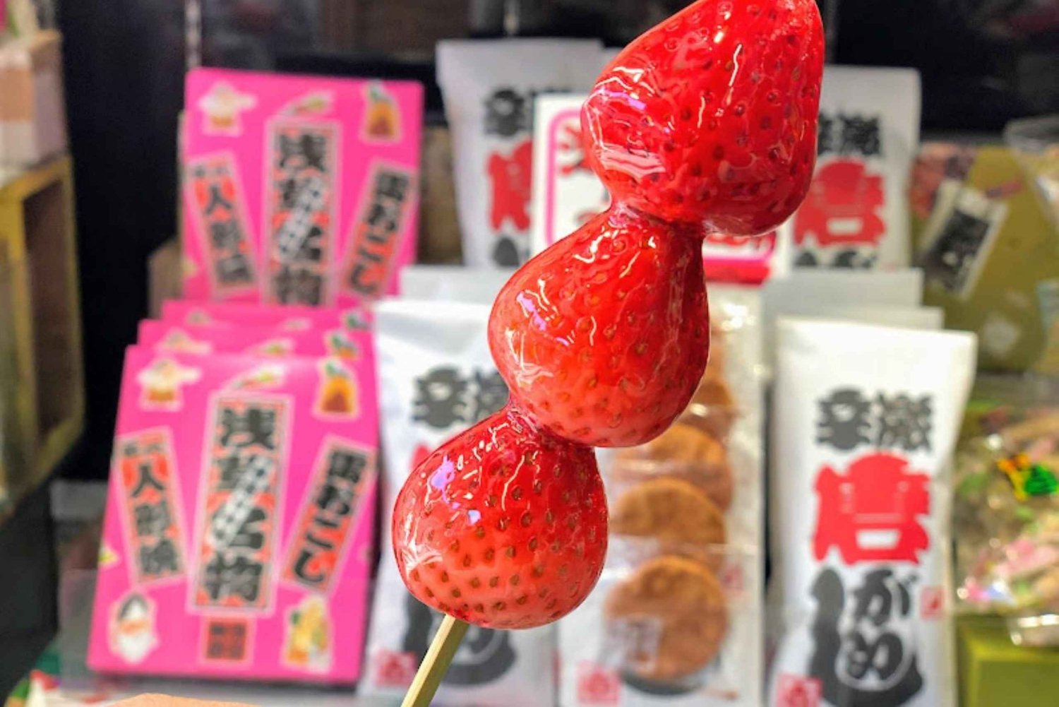 Remontez le temps à travers plusieurs siècles d'histoire de Tokyo lors de cette visite à pied immersive d'Asakusa, qui abrite le plus ancien temple de la capitale et l'un de ses quartiers les plus emblématiques. Commencez par Senso-ji, le légendaire temple bouddhiste qui existe depuis le VIIe siècle. En passant sous l'impressionnante porte Kaminarimon et en vous promenant dans la rue Nakamise, vous serez entouré de boutiques traditionnelles, de lanternes lumineuses et d'arômes de pâtisseries fraîchement préparées et de snacks de rue, qui capturent l'essence d'un Japon intemporel.