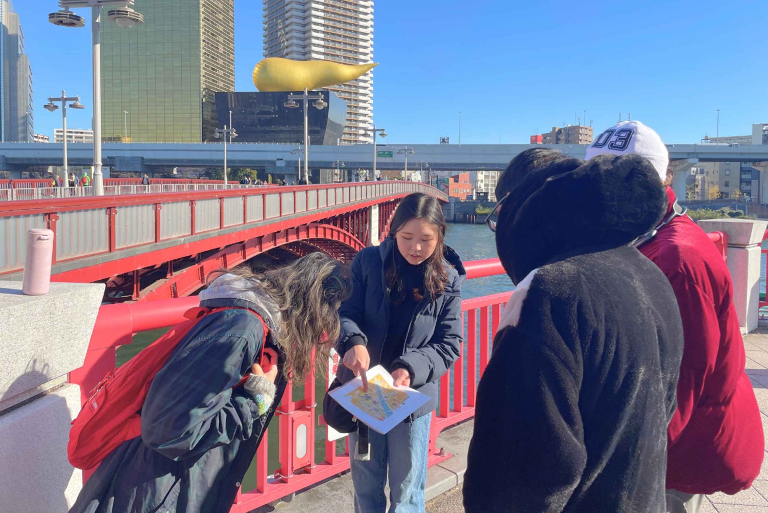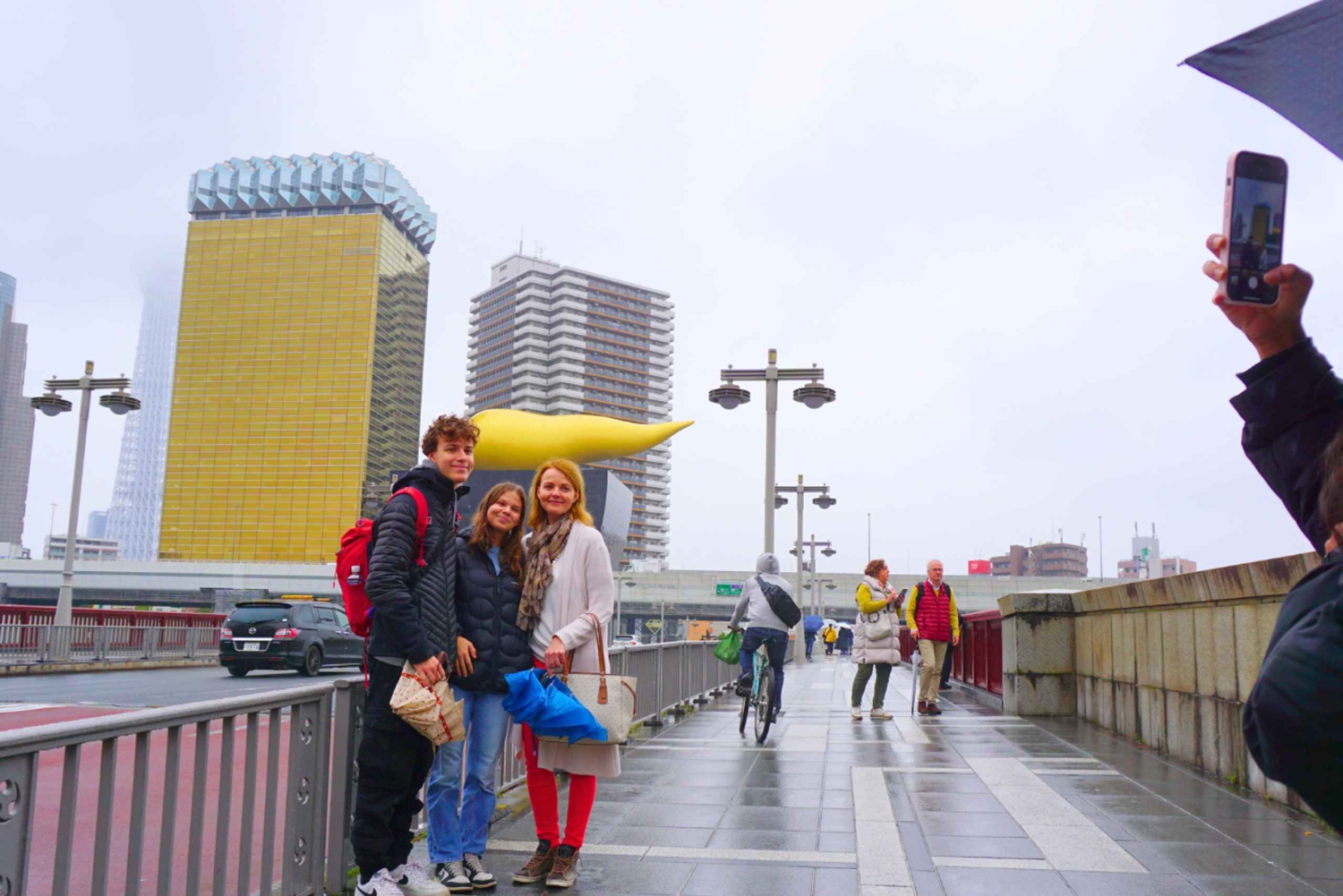 Nous commencerons au pont Azumabashi, avec une vue sur la Tokyo Skytree depuis les rives du fleuve, pour observer le « caca doré » (oui, c'est ainsi que les habitants l'appellent), puis nous nous rendrons au sommet du centre d'information touristique d'Asakusa pour profiter d'un point de vue caché sur l'ensemble du quartier du temple !