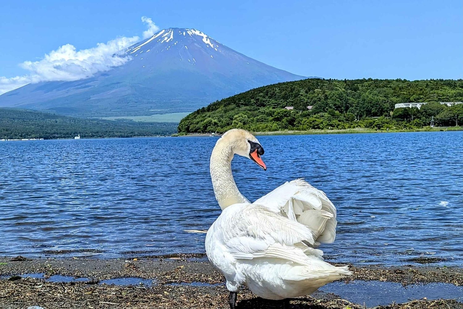 - Goditi una pausa serena in riva al lago Yamanaka, sulla spiaggia di Hirano, con vista sul Monte Fuji.