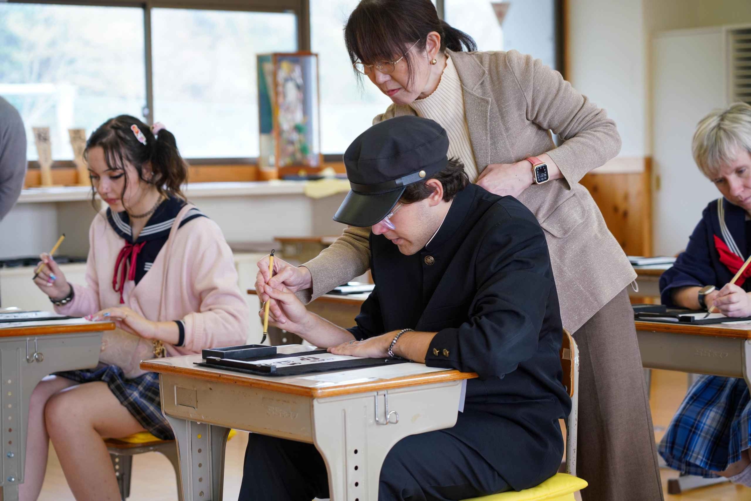 Poi è il momento della lezione di lingua giapponese. Impara a fare calligrafia su una racchetta hanetsuki che potrai portare a casa come souvenir prima di consumare il tradizionale pranzo scolastico.