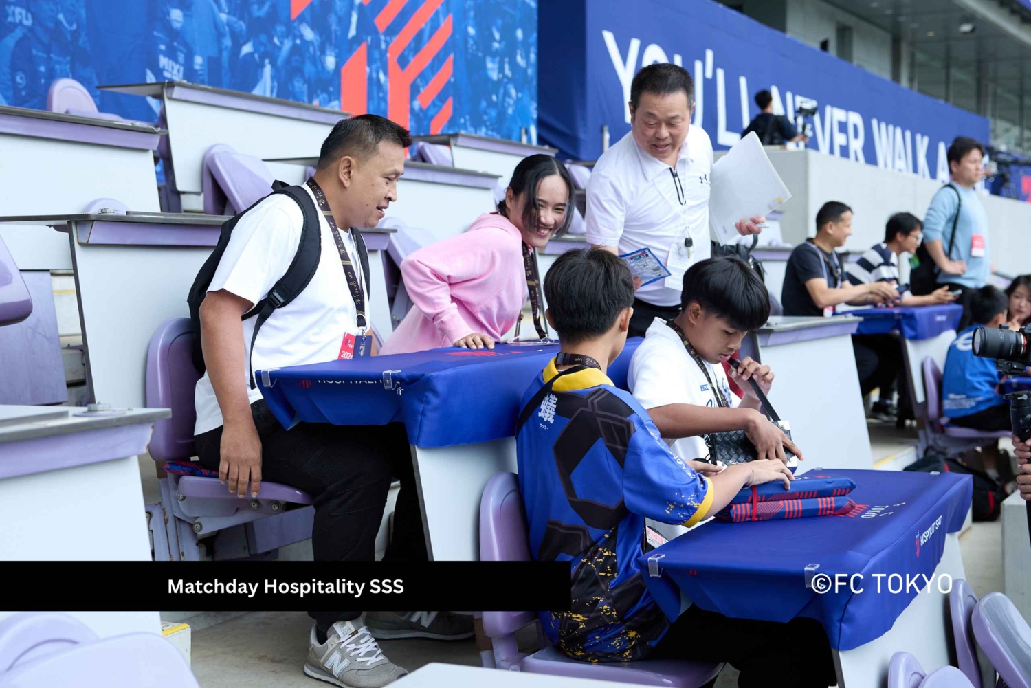 Nota: le immagini contrassegnate con Matchday Hospitality SSS fanno parte del nostro pacchetto speciale FC Tokyo Matchday Hospitality, disponibile solo per alcuni incontri e indicato come nome della categoria al momento della prenotazione. Le prenotazioni di Main Stand S, Back Stand Center e Home Supporter Side sono solo biglietti e non includono questi extra.