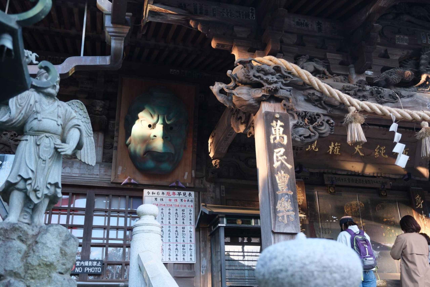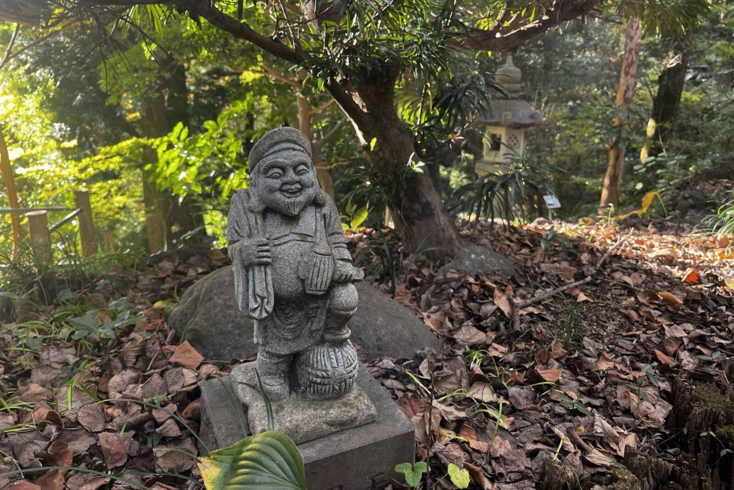 探検を続け、高尾寺までハイキング。お寺の長く魅力的な歴史について学びましょう。山を守り、悪人を懲らしめると信じられている神話上の生き物、天狗の像を見る。