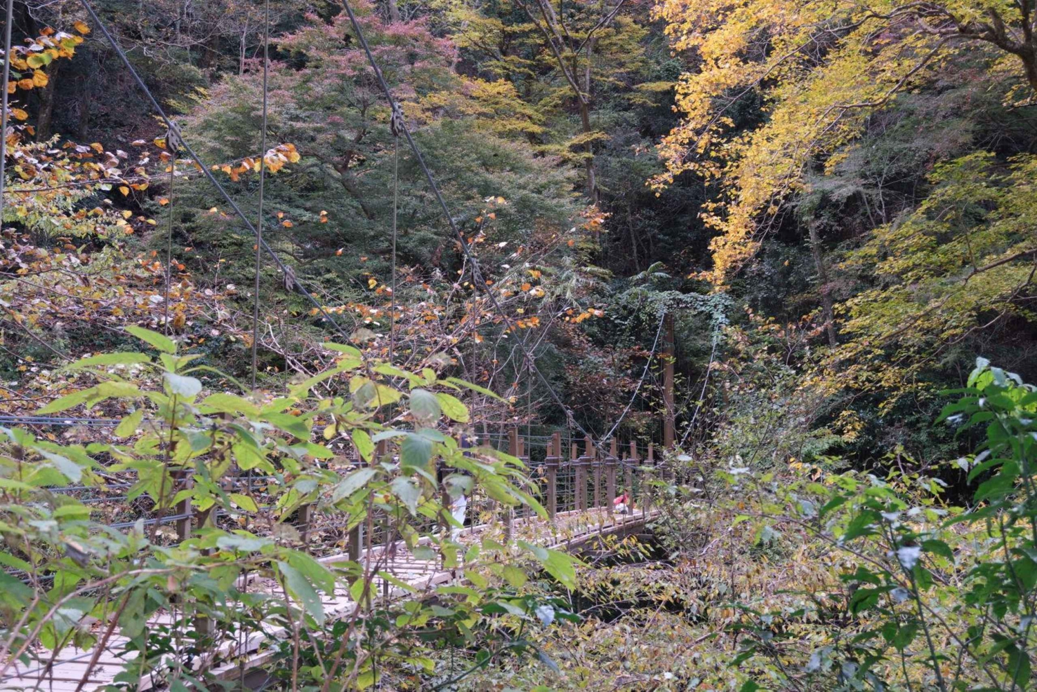 次に、メイントレイルから外れて高尾山の吊り橋を訪れよう。橋を歩いて渡り、高尾に来た記念に写真を撮ろう。美しい木造の鳥居をくぐり、美しい杉並木を歩く。休憩がてら、作りたてのだんごをどうぞ。