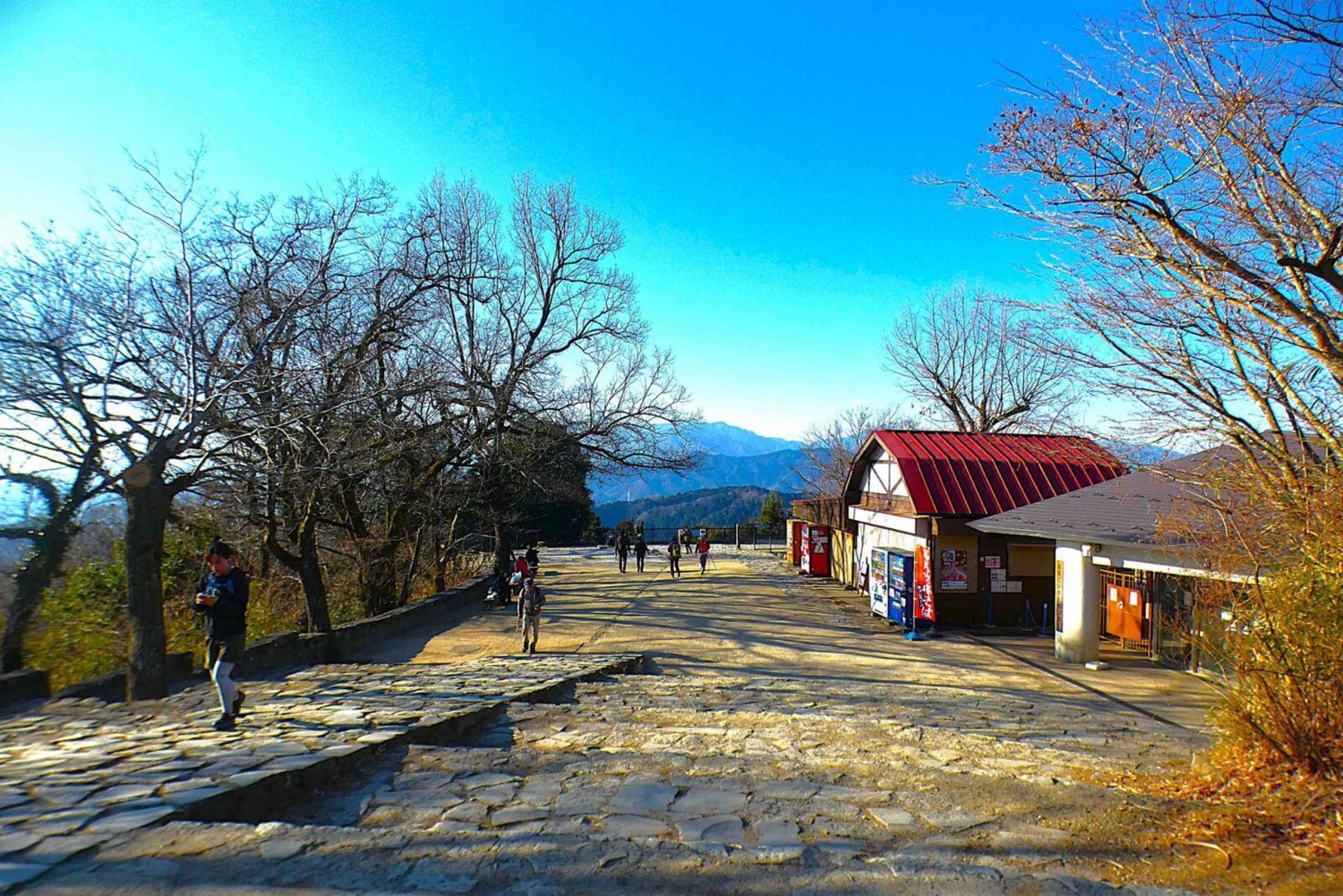 山頂まで登り、東京や周辺の自然、晴れた日には富士山の素晴らしいパノラマビューをお楽しみください。自由時間やお昼休みは、リラックスしたり、休憩したり、写真を撮ったり、山頂のカフェで出来たての麺料理を楽しんだりしてください。