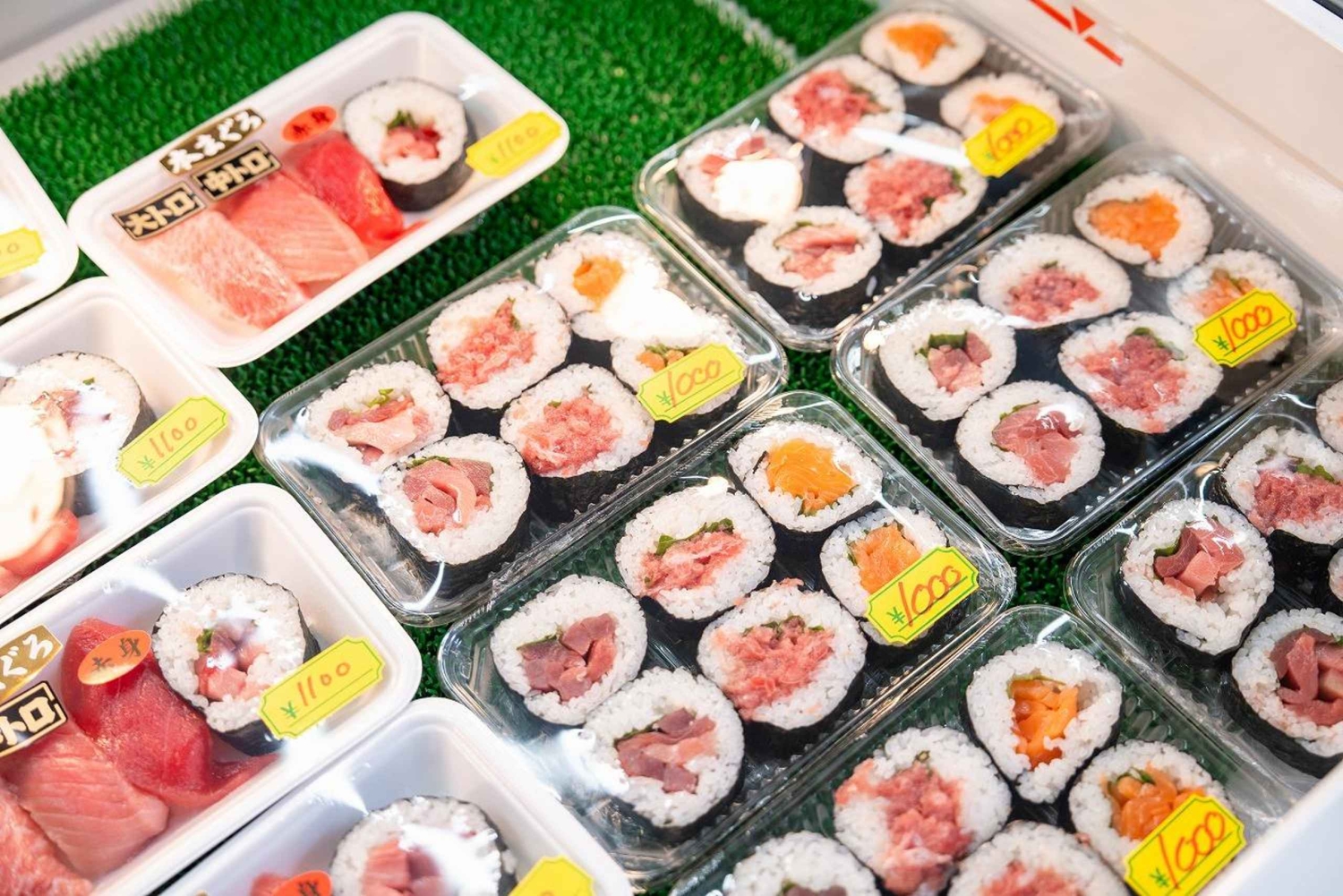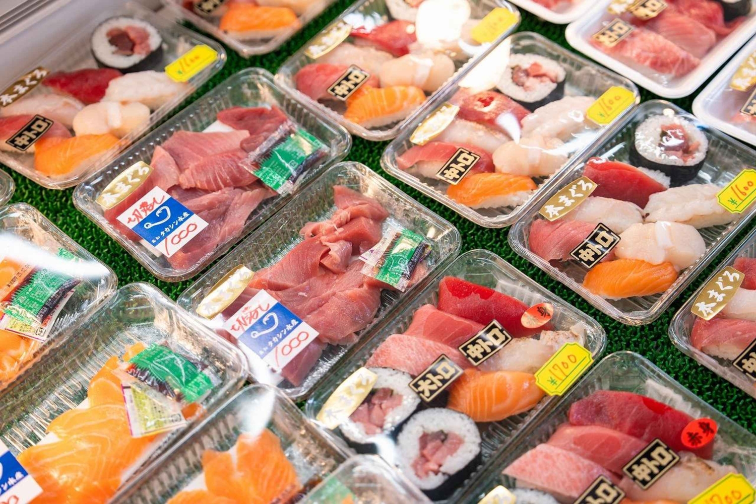 寿司、焼き魚、玉子焼き、果物、伝統的なお菓子など)