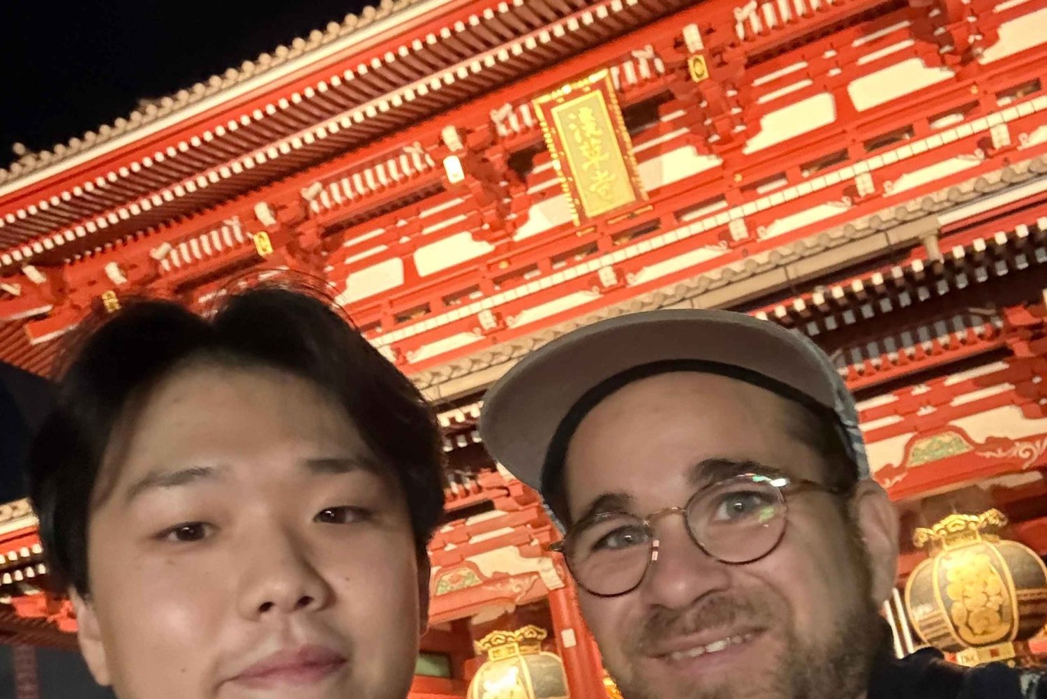浅草散策&写真撮影ツアー 東京最古の地区、浅草へお越しください。 雷門を訪れ、地元の軽食をお楽しみいただき、ガイドと一緒に浅草寺で思い出をお撮りください。