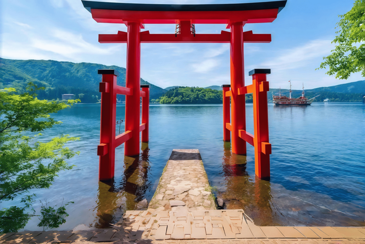 - 箱根神社を訪れ、芦ノ湖に浮かぶ象徴的な浮き鳥居をご覧ください