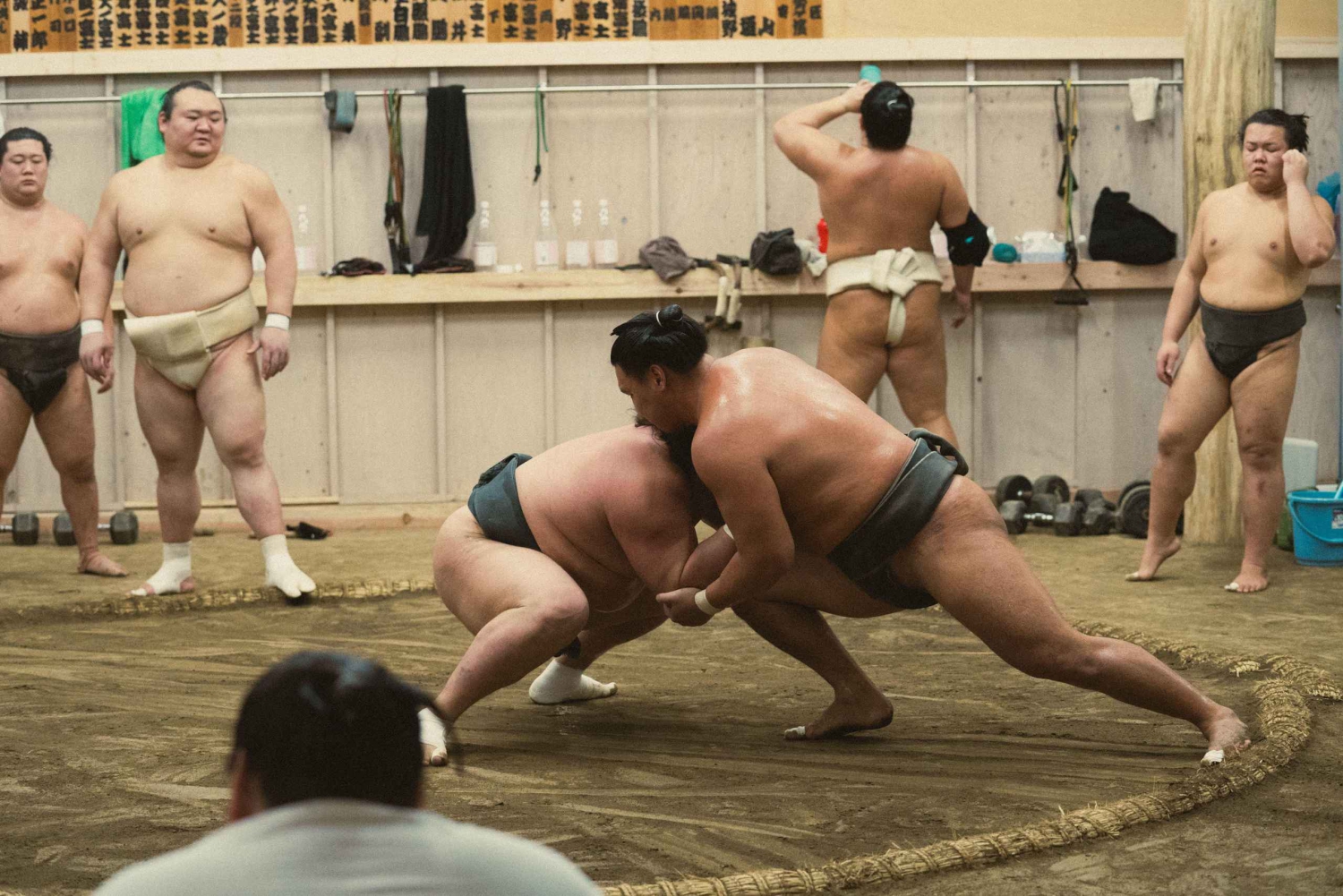 Dit is geen geënsceneerde voorstelling of een toeristische show. Het is een intieme blik in de rauwe intensiteit van de sumotraining, op slechts enkele meters van de ring. Je voelt de kracht, de discipline en de geest van de sport terwijl deze zich voor je ontvouwt.
