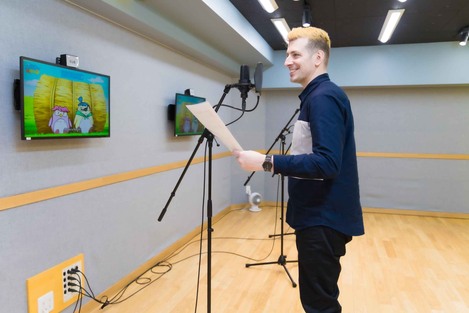Probeer vervolgens eens stemacteren. Krijg persoonlijke begeleiding van professionele stemacteurs bij RD (animate Group). Neem op in een echte studio en krijg de gegevens van je opname als aandenken.