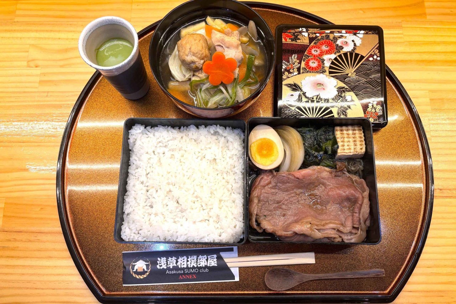 De maaltijd bestaat onder andere uit een originele chanko-nabe (chicken hot pot) onder toezicht van sumoworstelaars, en sukiyaki en tempura gemaakt met Japans A5-rangs wagyu rundvlees.