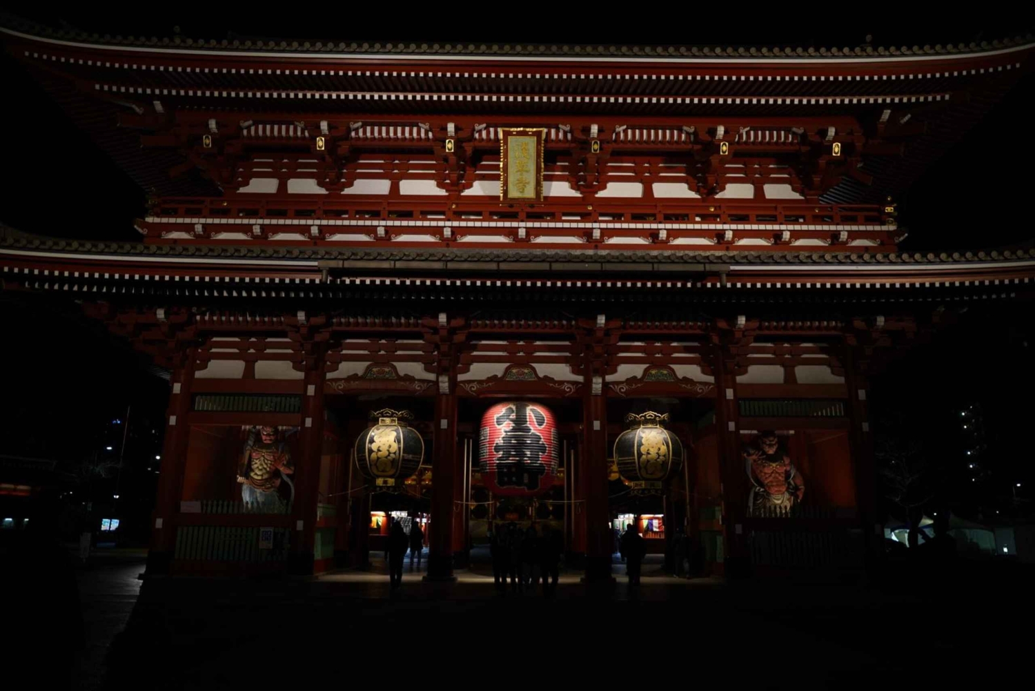 Oppdag magien i Asakusa om natten på en omvisning til fots. Spaser gjennom den vakkert opplyste Kaminarimon-porten, og nyt den fredelige atmosfæren i Sensō-ji-tempelet etter at folkemengden har dratt.