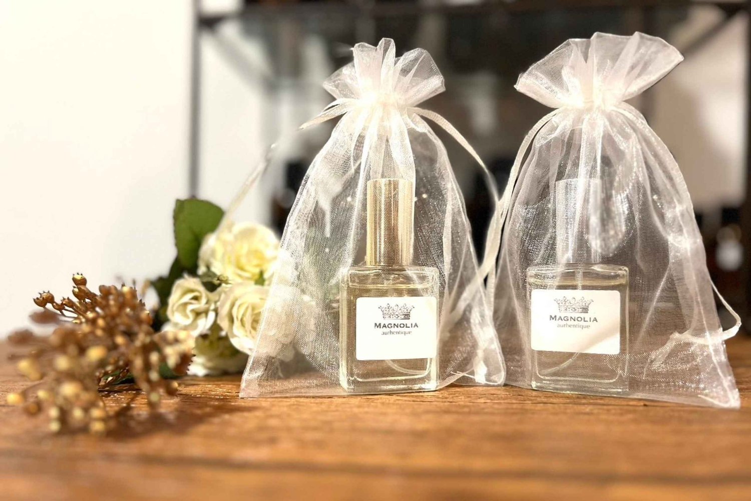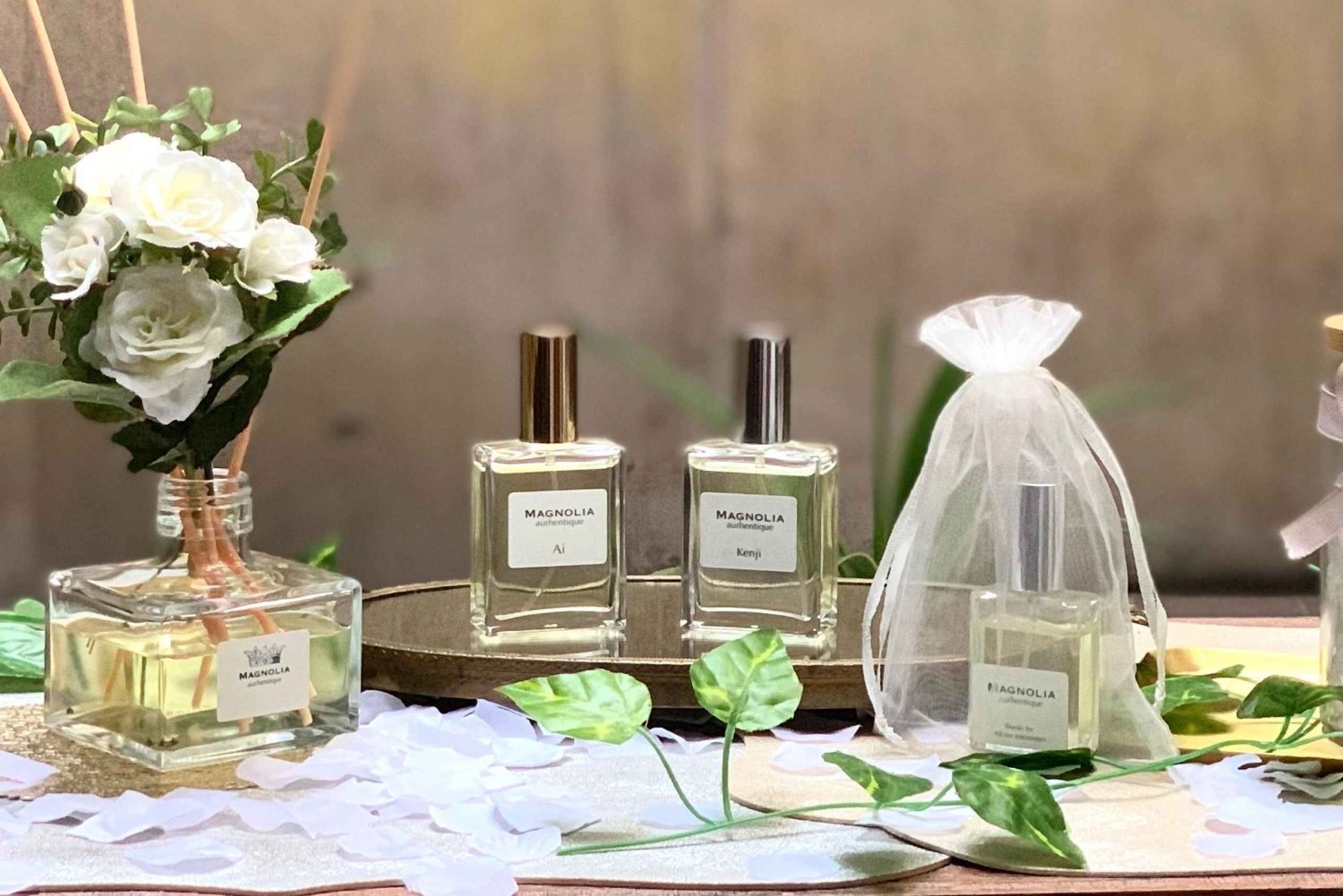 Lag din egen parfyme hos «Magnolia Fragrance» i Omotesando, Tokyo. Velg mellom 80 forskjellige dufter å blande. Nyt den fullverdige parfymeopplevelsen ved hjelp av en dråpeteller og et målebeger.