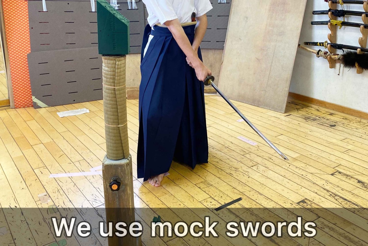 Podczas lekcji iai nauczysz się obsługiwać i wymachiwać mieczem treningowym.