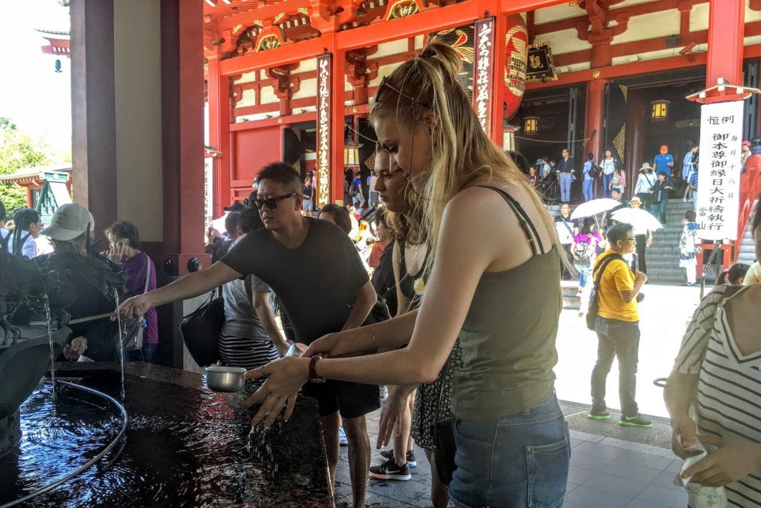 Odkryj 12 miejsc i atrakcji, które musisz zobaczyć / zrobić w Tokio, jadąc rano luksusowym autokarem! Podczas tej wycieczki zabierzemy Cię do najbardziej znanych miejsc w Tokio, takich jak świątynia Meiji, Asakusa, Pałac Cesarski i najpopularniejsze atrakcje, takie jak oddawanie czci w świątyni, zakupy na japońskiej starej ulicy handlowej i picie matchy! Rozpoczynamy wycieczkę z centrum Tokio, Shinjuku (pomnik miłości) o 8 rano. Wygodny klimatyzowany autokar przejedzie obok Kabukicho, które jest popularnym japońskim pubem. Autobus zabierze Cię najpierw do 'Meiji Jingu Shinto Shrine', jednej z najsłynniejszych świątyń Shinto w Japonii. Świątynia została zbudowana w 1921 roku i została stworzona dla cesarza Meiji i jest otoczona pięknym lasem, w którym zapomnisz, że jesteś w środku Tokio. Weź głęboki oddech i poczuj świętą atmosferę japońskiej świątyni. Następnie przejdziemy przez Takeshita Avenue, która reprezentuje Harajuku i jest znana jako centrum japońskiej popkultury i prowadzi do dzielnicy handlowej Omotesando. Przejdziemy również obok Budynku Sejmu Narodowego, który jest japońskim parlamentem z pięknym symetrycznym budynkiem zbudowanym w 1936 roku. Nasz autobus zatrzyma się przy Pałacu Cesarskim, gdzie znajduje się obecna rezydencja rodziny cesarskiej, a także miejsce, w którym znajduje się Zamek Edo, zamek w Tokio. Odwiedzimy Ogród Wschodni (tradycyjne japońskie ogrody) lub Most Niju-bashi (historyczna japońska budowla) w Ogrodzie Zewnętrznym, Po zapoznaniu się z historią Japonii autobus przejedzie przez Akihabarę, centrum kultury anime 'Otaku'. Autobus minie Ueno, znany jako najstarszy park w Japonii, oraz ulicę targową Kappa-Bashi, gdzie możesz zobaczyć wiele przedmiotów kuchennych, takich jak japońskie naczynia, noże i bardzo realistycznie wyglądające repliki żywności. A potem nadszedł czas na zwiedzanie Asakusy! Jedno z najbardziej znanych miejsc do zwiedzania w Tokio! Zrób zakupy na alei Nakamise i nie zapomnij zrobić zdjęć przy bramie Kaminari-mon, kultowej czerwonej latarni! W Asakusa nasza wycieczka oferuje to wyjątkowe japońskie doświadczenie! Autentyczne doświadczenie Uji Matcha Ciesz się 'nie gorzką zieloną herbatą Matcha' znaną jako 'Premium Matcha', która wykorzystuje 'Ichibancha' (pierwsze płukanie) z Uji w Kioto. *Mamy również opcje na słodkie lody Matcha Gelato lub piwo Matcha. Tutaj zakończysz wycieczkę, więc spędź tyle czasu, ile chcesz w Asakusa! Wycieczka obejmuje komentarz zarówno naszego przyjaznego przewodnika, jak i wielojęzycznego audioprzewodnika w języku angielskim, francuskim, włoskim, hiszpańskim, niemieckim, portugalskim i ukraińskim. Autokar zawsze ma powłokę antybakteryjną i regularną wentylację, wygodny, klimatyzowany autobus z bezpłatnym Wi-Fi.Includes
