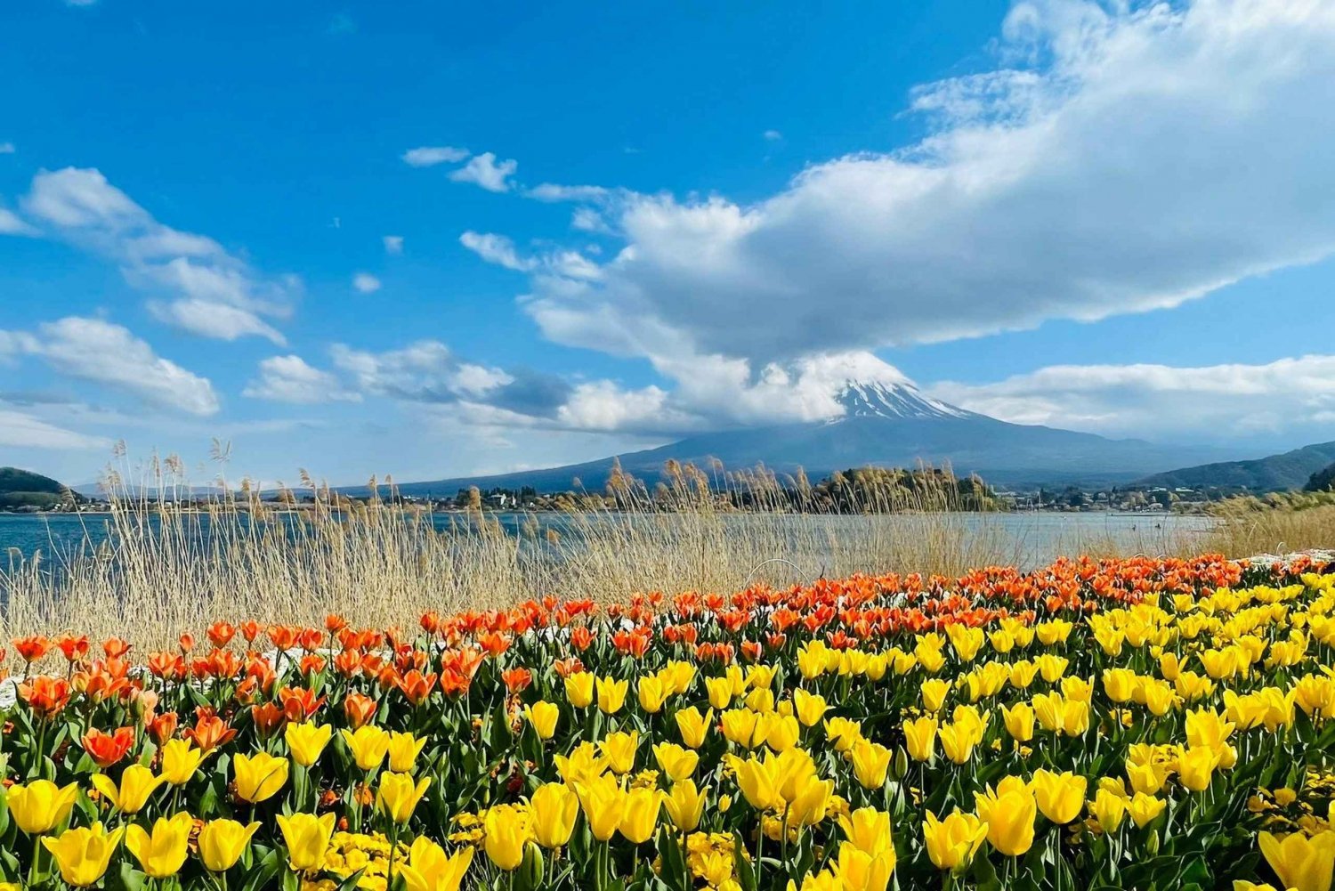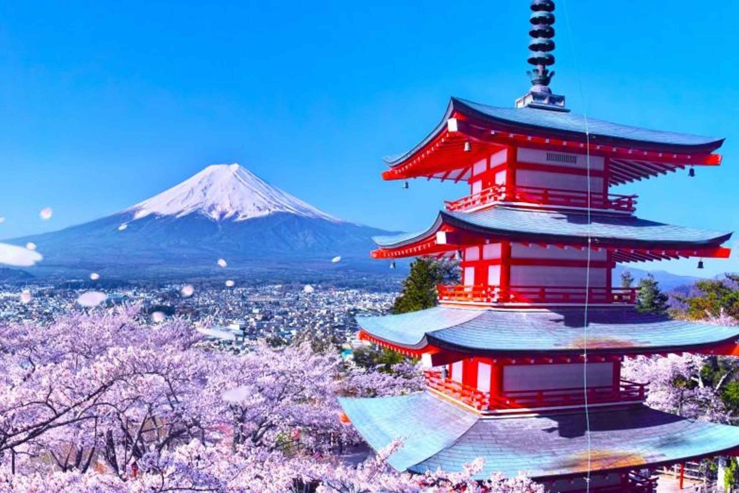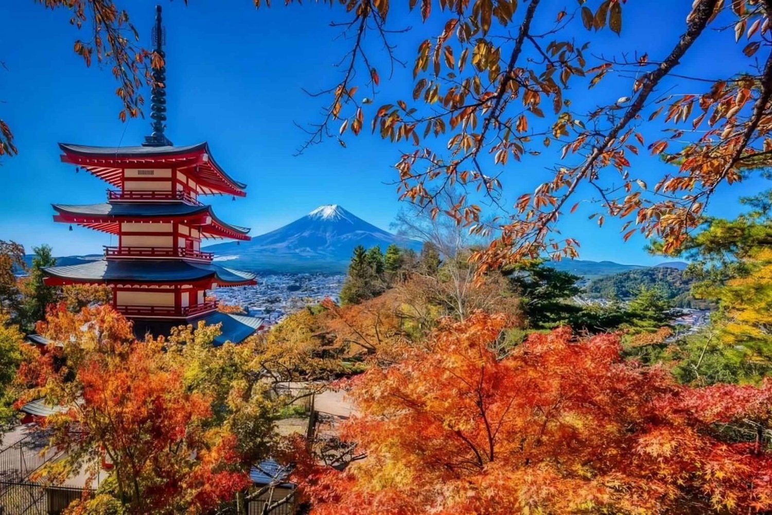 Откройте для себя великолепие горы Фудзи из Токио. Исследуйте Сайко Ияси-но-Сато Ненба и Осино Хаккай, прогуляйтесь по озеру Кавагутико и парку Оиси, полюбуйтесь знаменитой пагодой Чурейто в парке Аракура Сэнэн.