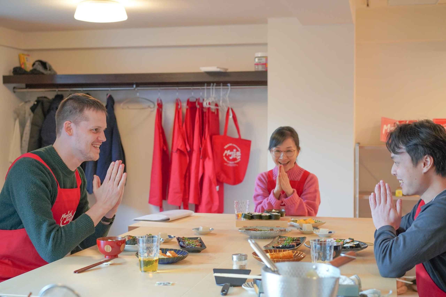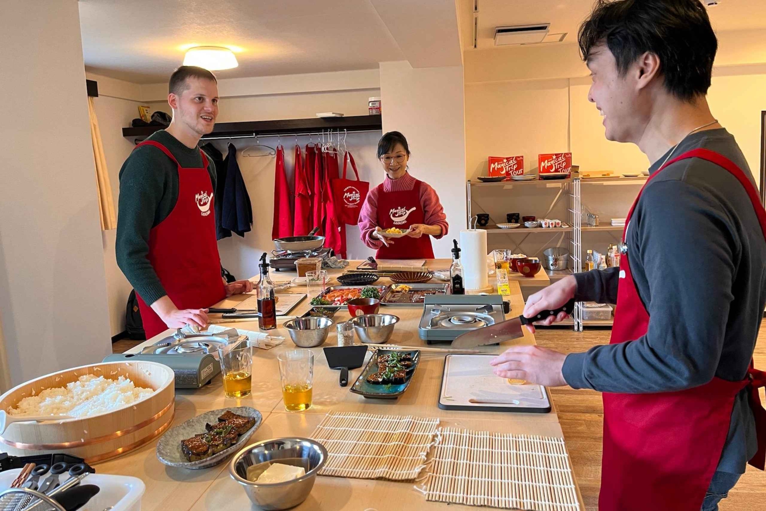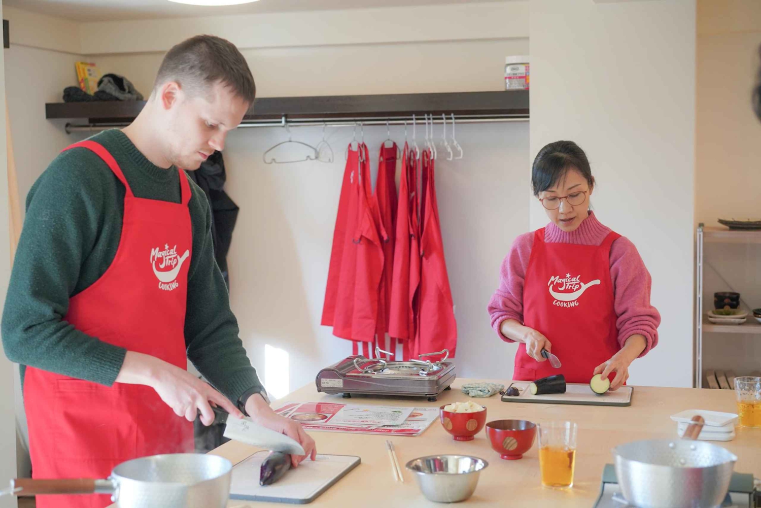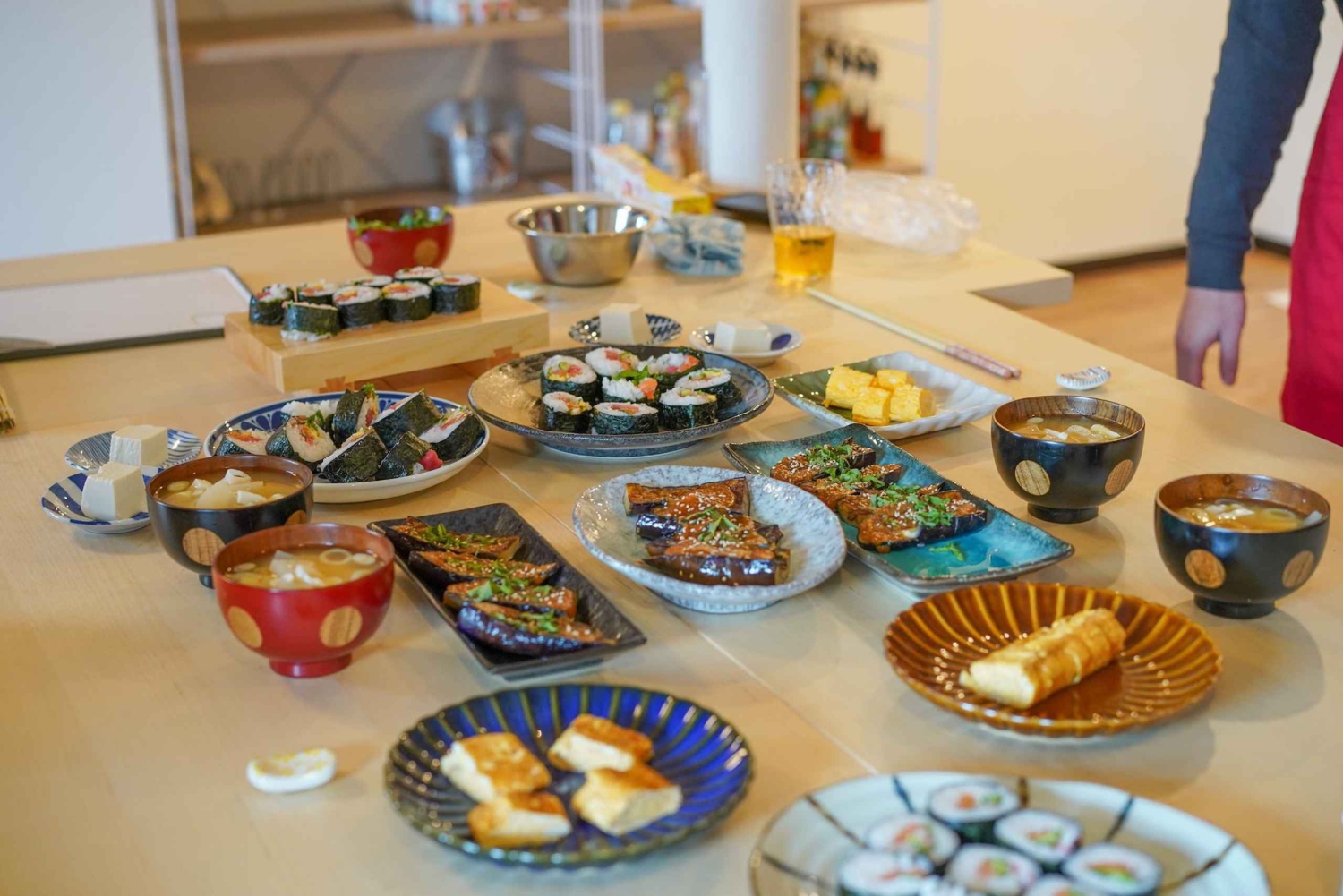 Собрав ингредиенты, мы перейдем в профессиональную кухонную студию, чтобы приступить к приготовлению пищи. Под руководством инструктора вы овладеете приемами японской домашней кухни: от точного владения японским ножом до приготовления основных элементов, таких как даси для супа мисо, и приготовления риса для суши, приправленного уксусом. Помимо суши, вы погрузитесь в создание аутентичных блюд, таких как суп мисо, дэнгаку из баклажанов и восхитительный дашимаки тамаго (рулет из яиц).