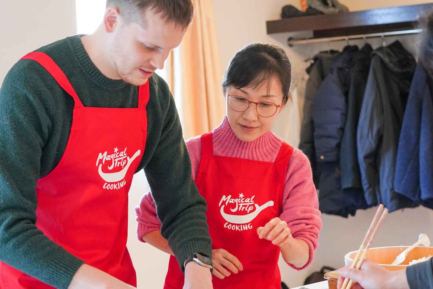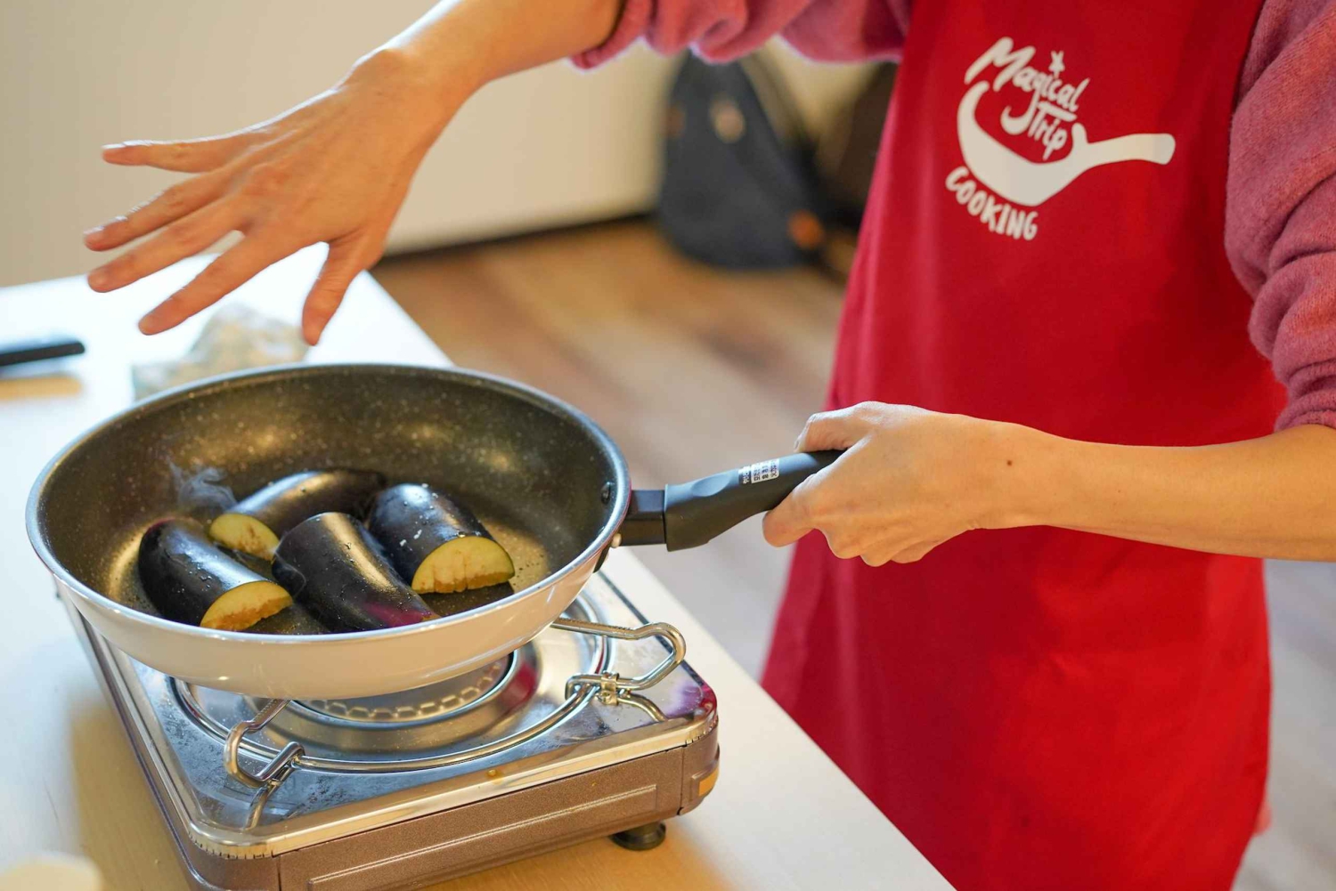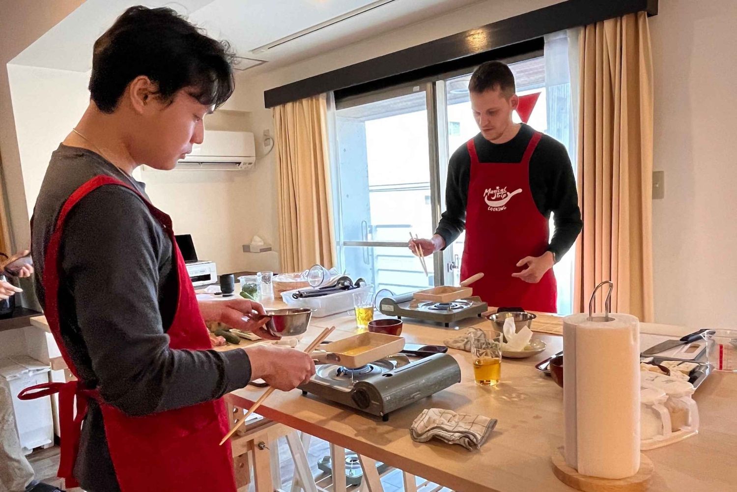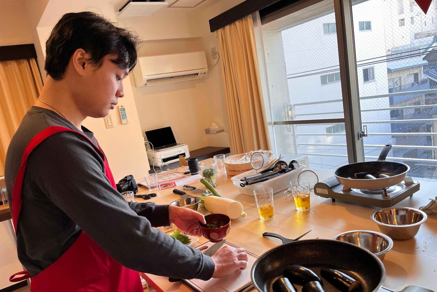 Собрав ингредиенты, мы перейдем в профессиональную кухонную студию, чтобы приступить к приготовлению пищи. Под руководством инструктора вы овладеете приемами японской домашней кухни: от точного владения японским ножом до приготовления основных элементов, таких как даси для супа мисо, и приготовления риса для суши, приправленного уксусом. Помимо суши, вы погрузитесь в создание аутентичных блюд, таких как суп мисо, дэнгаку из баклажанов и восхитительный дашимаки тамаго (рулет из яиц).