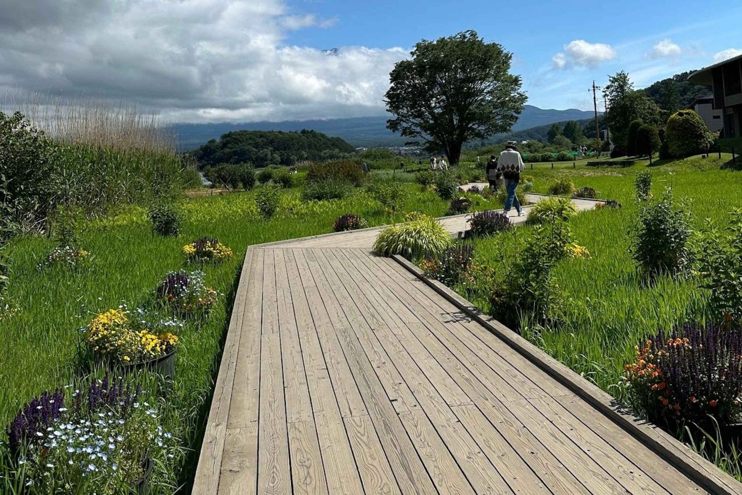 Окруженный высокими кедрами, этот храм уже давно является местом паломничества для тех, кто стремится подняться на гору Фудзи. Спокойная лесная обстановка и неподвластная времени архитектура святилища создают мощное ощущение связи с духовными корнями Японии. Наконец, вы прибудете к озеру Кавагутико, одному из пяти озер Фудзи, где красота горы Фудзи отражается в спокойных голубых водах.