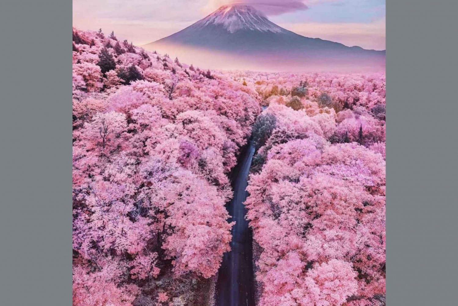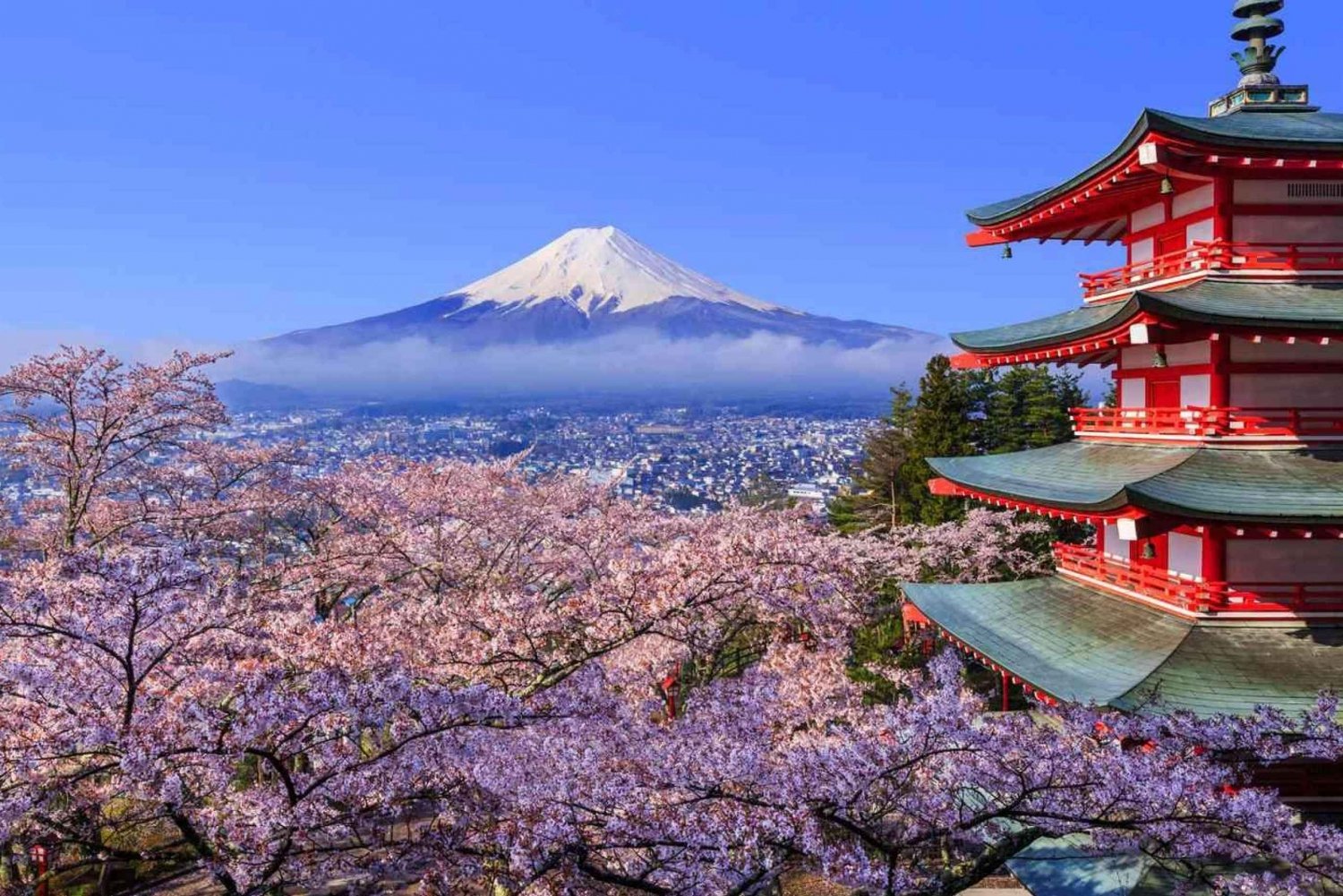 Вас заберут из отеля в Токио и начните свое приключение на гору Фудзи. Сначала посетите 5-ю станцию линии Фудзи-Субару и полюбуйтесь видом на район пяти озер Фудзи внизу. Продолжайте путь к пагоде Чурейто и прогуляйтесь по цветущей вишне, чтобы достичь вершины, откуда открывается панорамный вид на гору Фудзи.