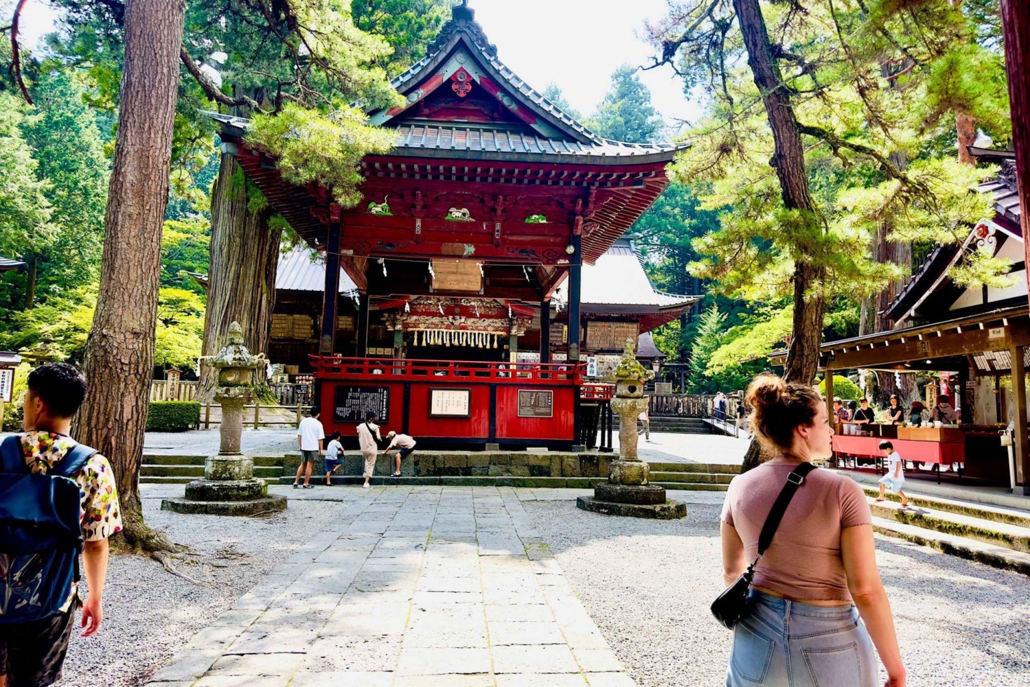 Затем остановитесь у храма Китагути Хонгу Фудзи Сенген Джиндзя. Пройдите сквозь древние массивные деревья и доберитесь до самых старых деревянных ворот храма. Продолжайте свое путешествие, чтобы добраться до Осино Хаккай, объекта Всемирного наследия. Полюбуйтесь 300 цветущими вишнями и кристально чистой водой, а также посетите магазины.