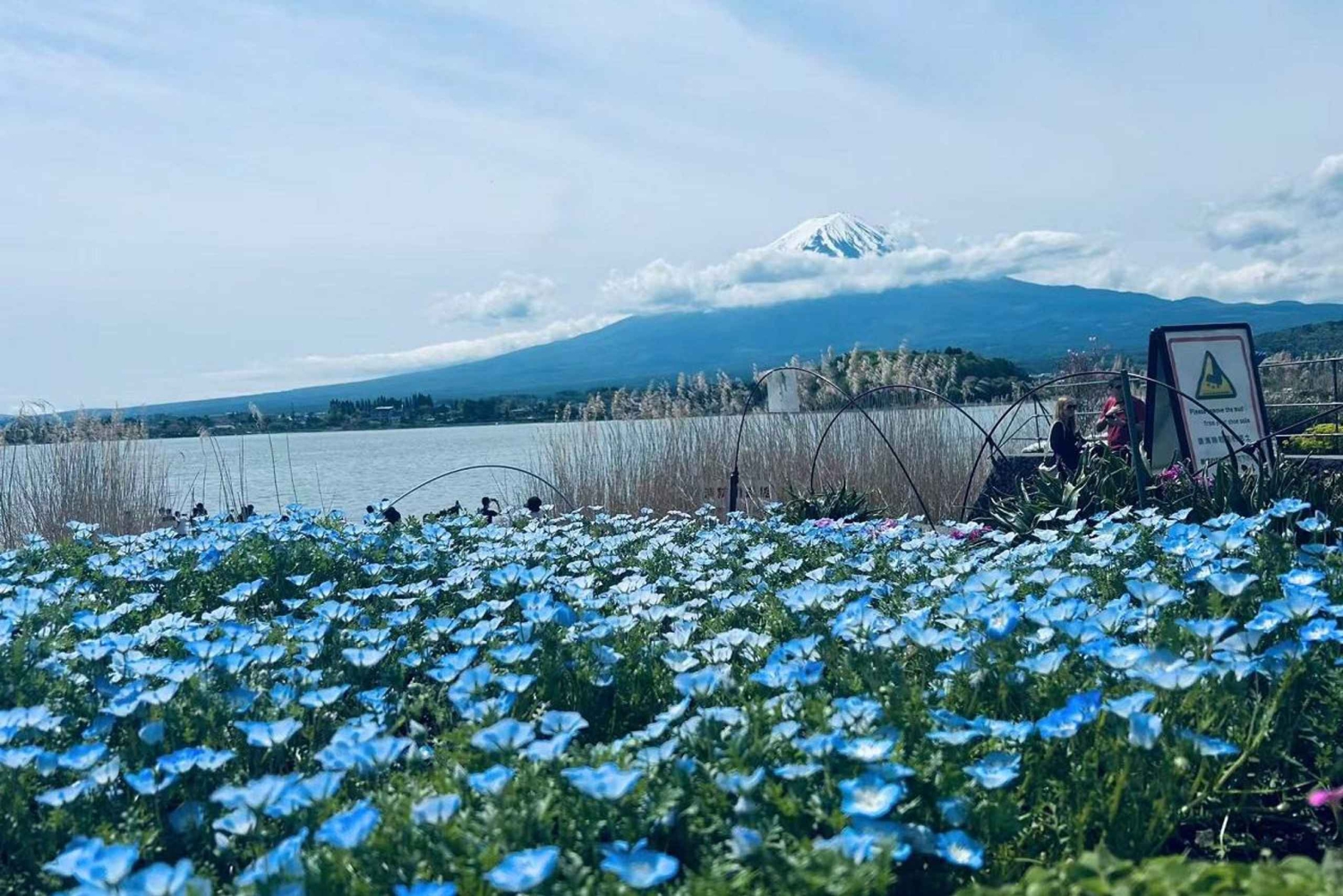 Börja din resa med en naturskön tur till Kawaguchisjön, den mest populära av Fujis fem sjöar. Kawaguchisjön är känd för sin enastående utsikt över Fuji, säsongsbetonade blomsterlandskap och välutvecklade turistfaciliteter, och är den perfekta utgångspunkten för att uppleva regionens naturliga skönhet och kulturella rikedom.