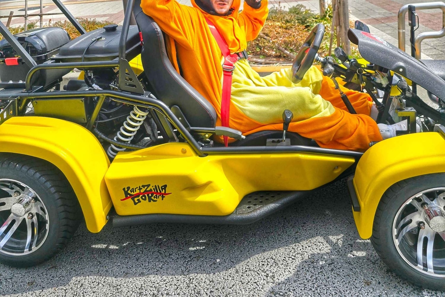 Uthyrning av gokart som är lagliga på vägarna Bränsle för hela turen Professionell lokal guide Anime-kostymuthyrning Användning av Insta360-kamera ombord (Micro SD-kort krävs) Olycksfallsförsäkring Drycker (vatten, te, kaffe)Important Information