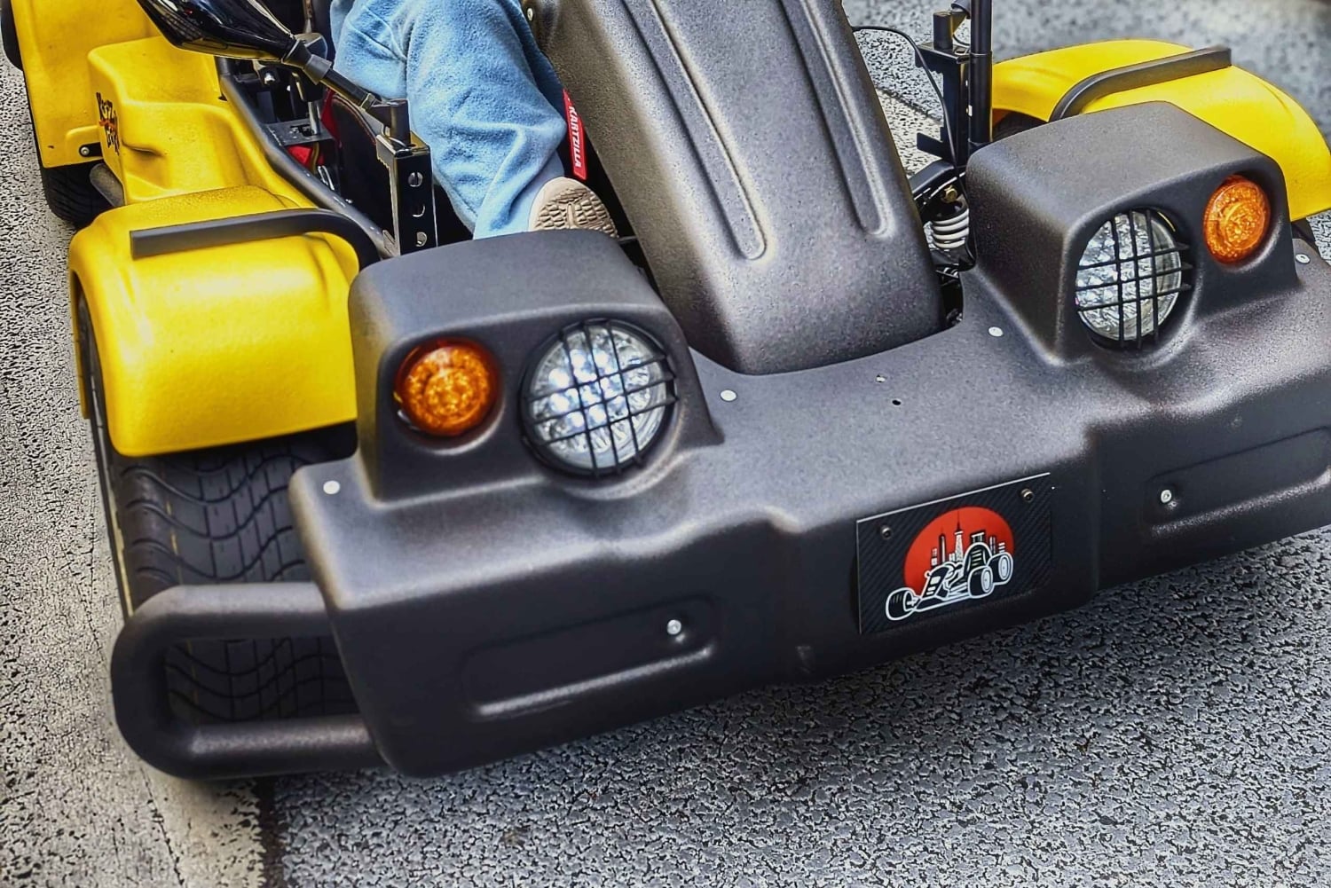 - Åk gokart på en stabil, bekväm gokart som är designad för stora och långa förare.