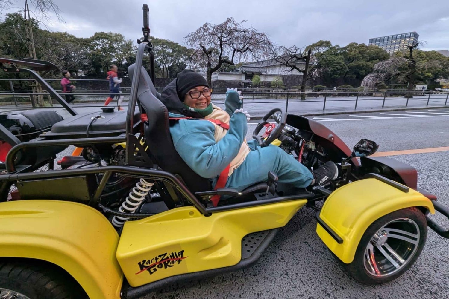 Fullständig beskrivning – Gokarttur med körsbärsblomning (vår) Upplev Tokyo när det är som vackrast under våren på en guidad, gatulegal gokarttur som blandar säsongsbetonade landskap, historiska landmärken och riktig stadskörning till ett oförglömligt äventyr. Din upplevelse börjar och slutar på Kartzilla Go Kart Base i Higashiyotsugi, Katsushika-ku. Efter incheckningen träffar du din professionella guide, väljer en rolig kostym och får en tydlig, säkerhetsfokuserad genomgång innan du tar ratten i en specialbyggd, gatulegal gokart. Gokartar utformade för komfort, säkerhet och självförtroende Kartzilla gokarts är konstruerade speciellt för stadsturism och verkliga trafikförhållanden. Funktionerna inkluderar: Förstärkta ramar som passar stora och långa förare Bekväma säten och stabil hantering, perfekt för förstagångsförare Smidig fjädring och hydraulisk bromsning för kontrollerad stadskörning Tvåvägsradiokommunikation mellan guider och gäster för tydliga instruktioner och ökad säkerhet Din guide leder gruppen hela tiden, vilket garanterar en avslappnad och välskött upplevelse. När du ger dig av, kör du förbi Tokyo Skytree, Japans högsta torn, innan du fortsätter genom distrikt som får en speciell charm under våren. Kör längs Edozakura-dori och Nihonbashi, historiska rutter där säsongens grönska mjukar upp den omgivande arkitekturen. Kör förbi det japanska svärdmuseet, där århundraden av hantverk möter lugna vårlandskap. Rutten fortsätter mot Chidorigafuchi och det kejserliga palatsområdet, ett av Tokyos mest kända säsongsbetonade landskap. Trädkantade vattenvägar och öppna parkutsikter skapar en fridfull kontrast till den omgivande staden och fångar essensen av våren i Tokyo. Du åker sedan genom Ginza och Kabukiza, där modern elegans och traditionell kultur är inramade av färska vårblomster. Kör förbi Tsukiji Honganji och Suitengu Shrine, historiska andliga landmärken mot frodig grönska när körsbärsblomningssäsongen går mot sitt slut. Under hela turen kan du fånga ögonblicket med en Insta360°-kamera och spela in uppslukande 360-gradersvideor och foton av din resa genom historiska gator, natursköna parker och livliga stadslandskap som berörs av våren. Efter att ha slutfört rutten, återvänd till Kartzilla Go Kart Base för att avsluta din upplevelse. Granska dina Insta360-bilder, ta några sista foton och återupplev ett äventyr som kombinerar säsongens skönhet, kultur och spänningen av att köra genom Tokyo på gatunivå. Denna vårupplevelse är tidsbegränsad och perfekt för resenärer, fotografer, par och alla som vill uppleva Tokyos sakurasäsong på ett verkligt unikt sätt. Boka nu innan säsongen går över.Includes