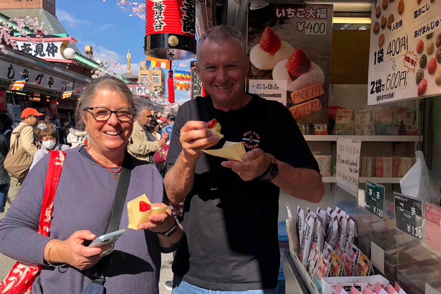 Njut av ett utsökt äventyr genom den livliga matupplevelsen i Asakusa-regionen.