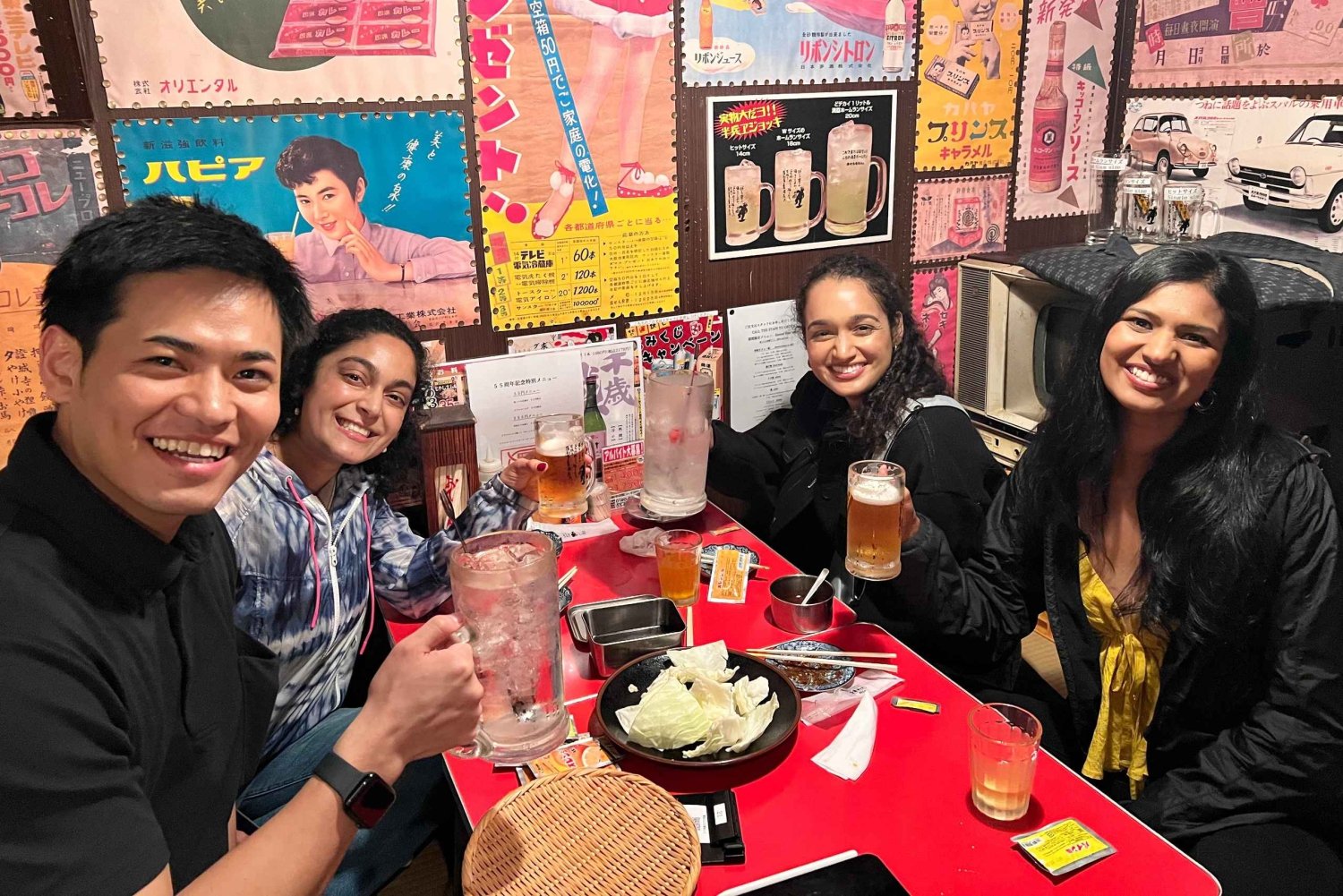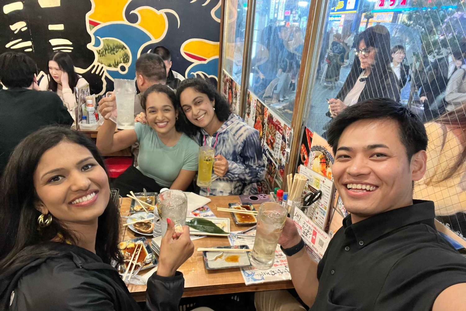 Upplev Tokyos nattliv med en lokal japansk lärare. Lär dig praktiska fraser, utforska dolda gränder och besök tre izakayas i Shinjuku.
