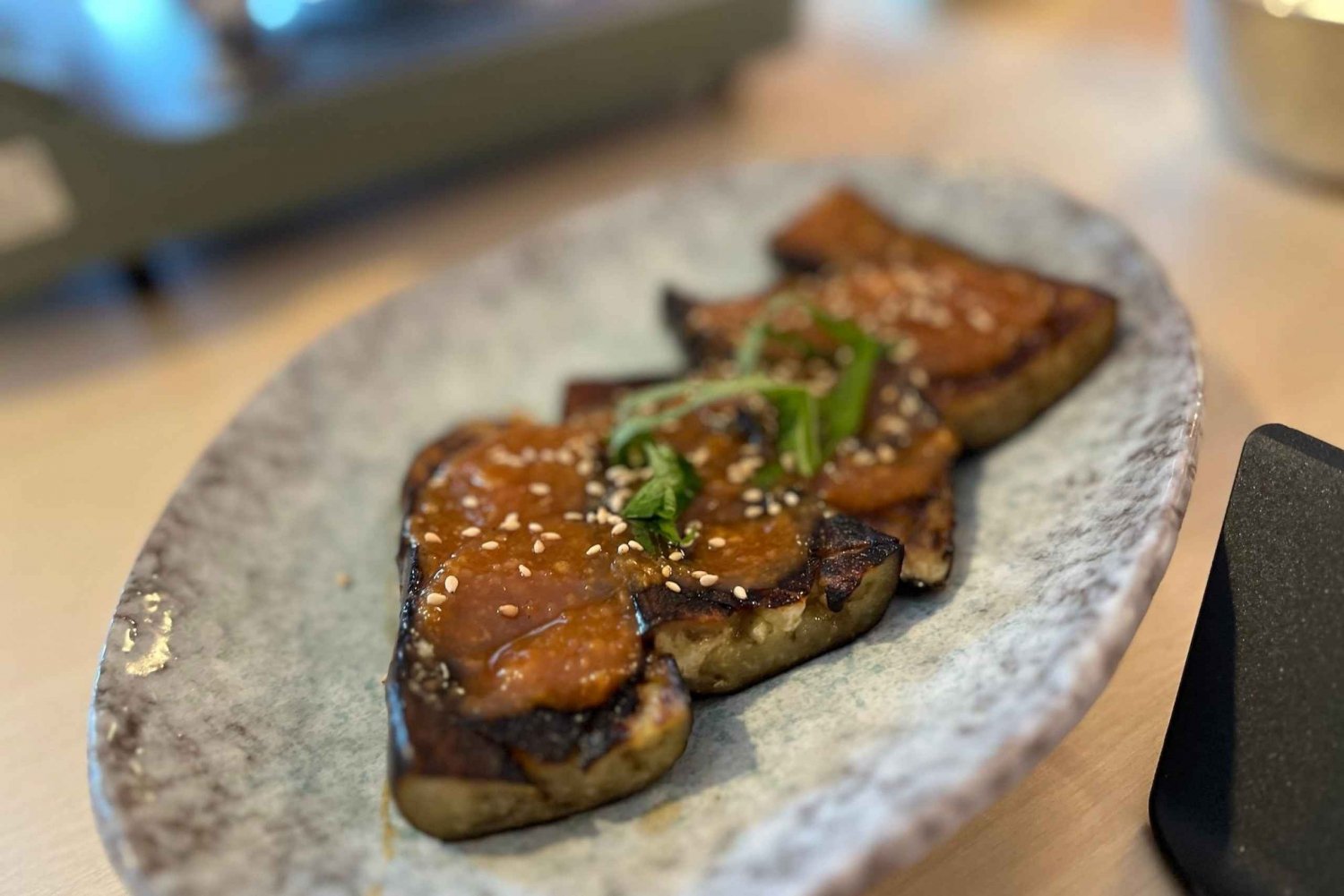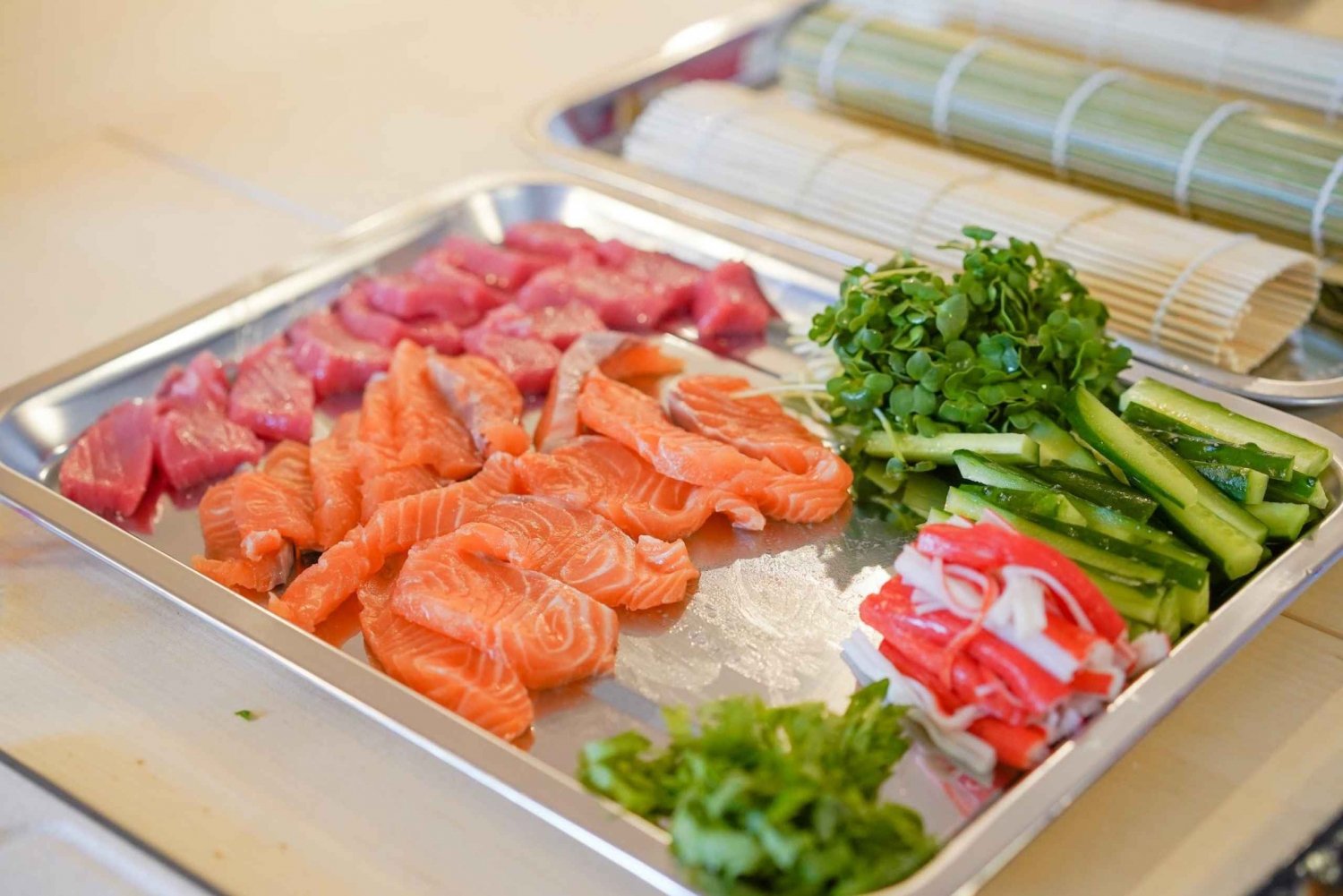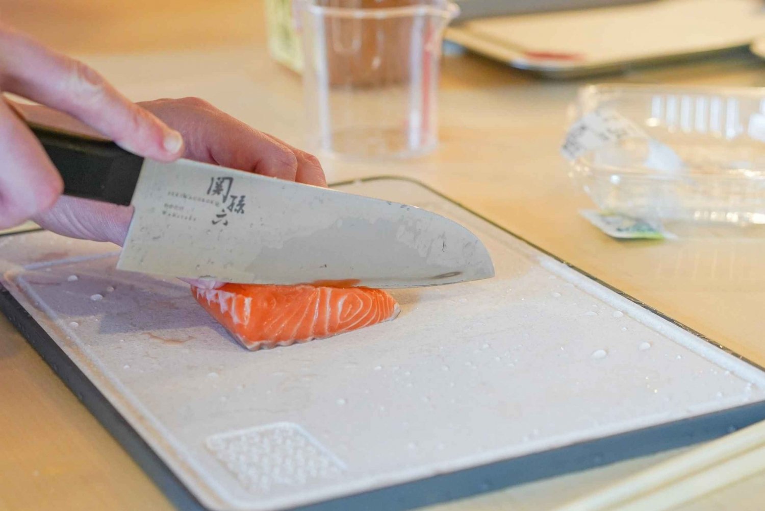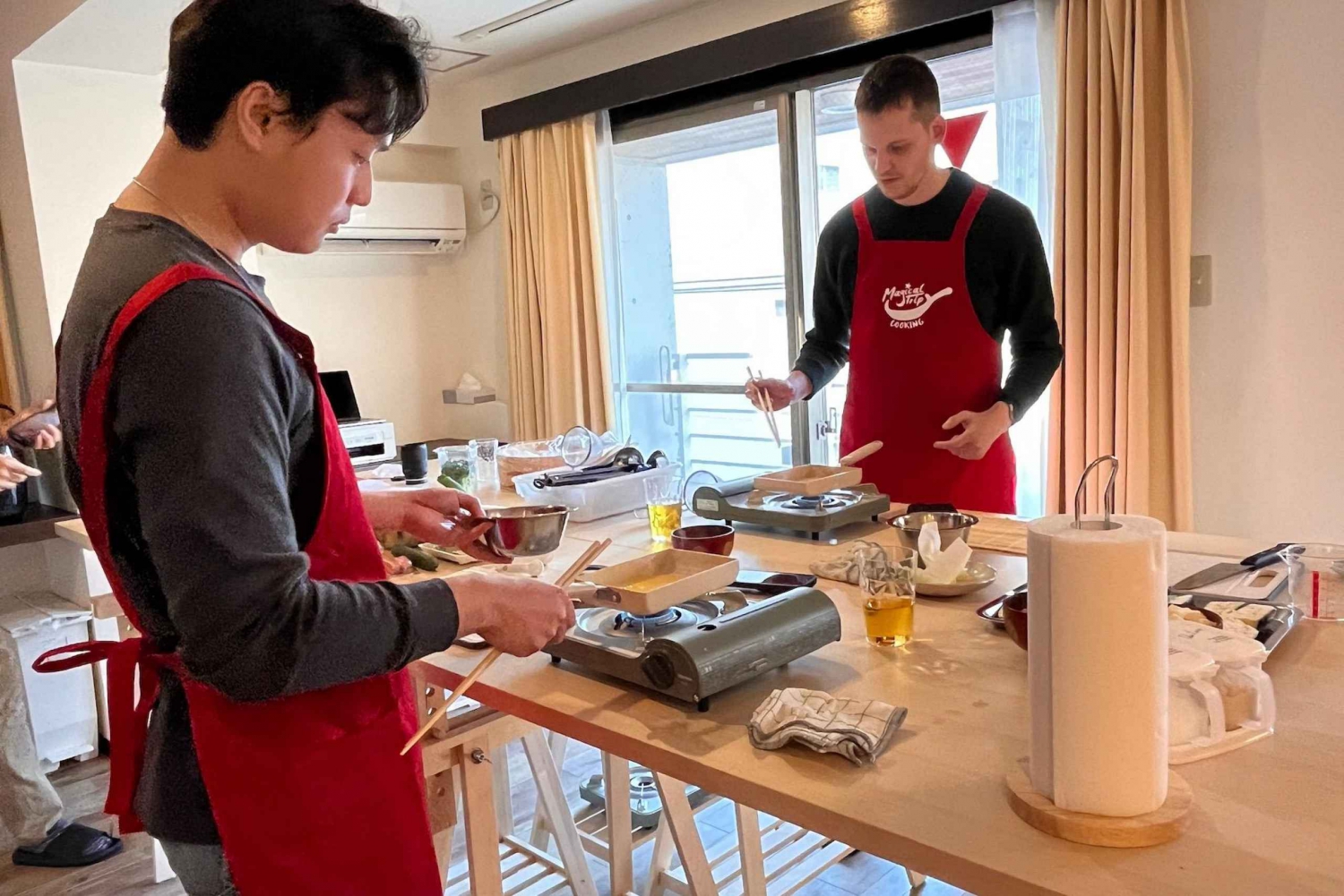 När vi har samlat ihop våra ingredienser beger vi oss till en professionell köksstudio för att påbörja vår matlagningssession. Under guidade instruktioner lär du dig att bemästra teknikerna för japansk husmanskost, från att hantera en japansk kniv med precision till att förbereda grundläggande element som dashi för misosoppa och skapa sushiris kryddat med vinäger. Utöver sushi får du fördjupa dig i att skapa autentiska rätter som misosoppa, aubergine dengaku och den förtjusande dashimaki tamago (rullat ägg).