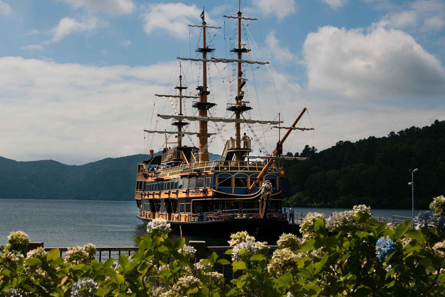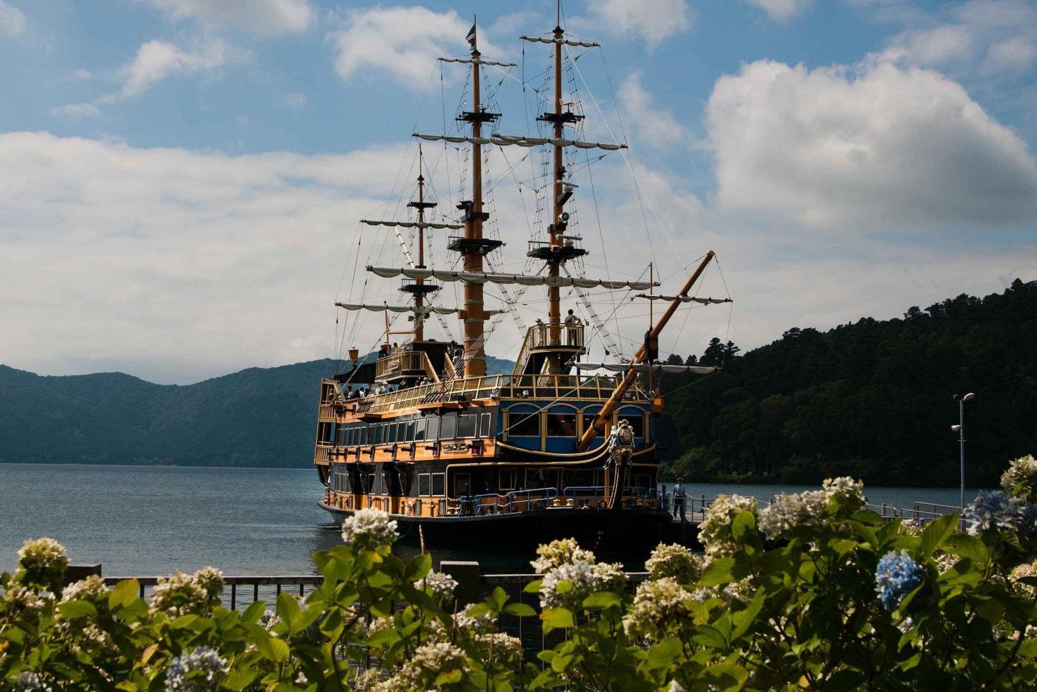 • Hakone Shrine & Lake Ashi – Visit the iconic red torii gate rising gracefully from the waters of Lake Ashi, a timeless symbol of Hakone.