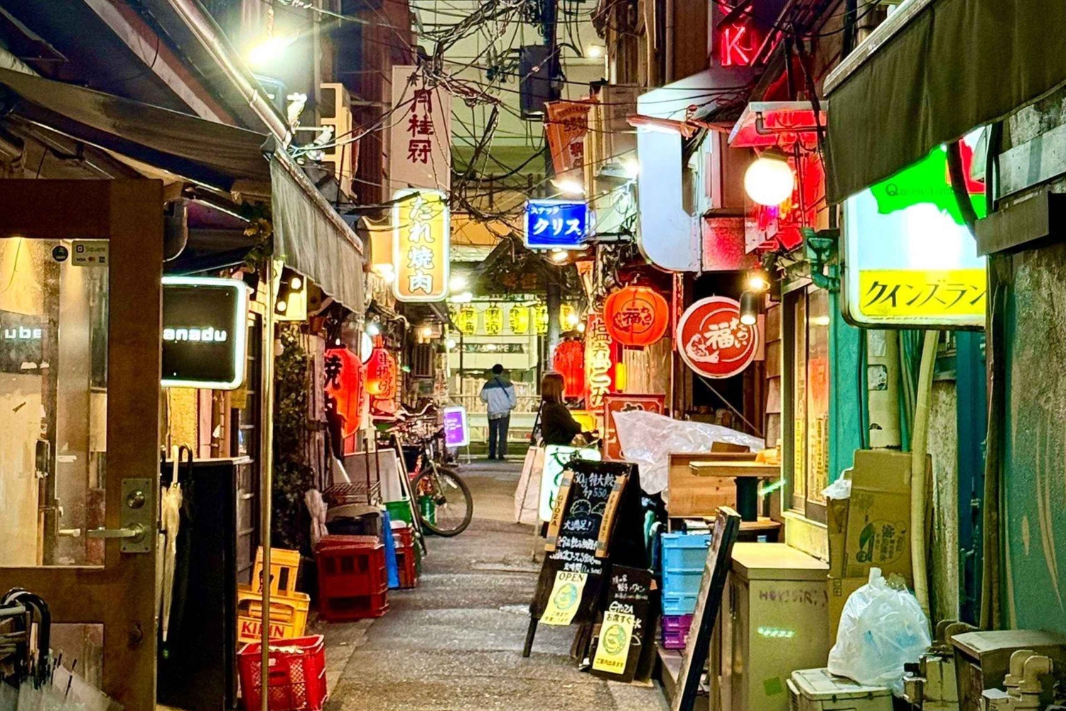 End the tour in the “Sankaku Chitai” or Triangle District—an atmospheric maze of narrow alleys filled with tiny bars, neon lights, and retro charm. This area has a unique, underground feel and is a beloved local nightlife spot. Stop by one of the cozy bars for a final drink, where you can soak in the laid-back vibe and reflect on the night’s experiences.