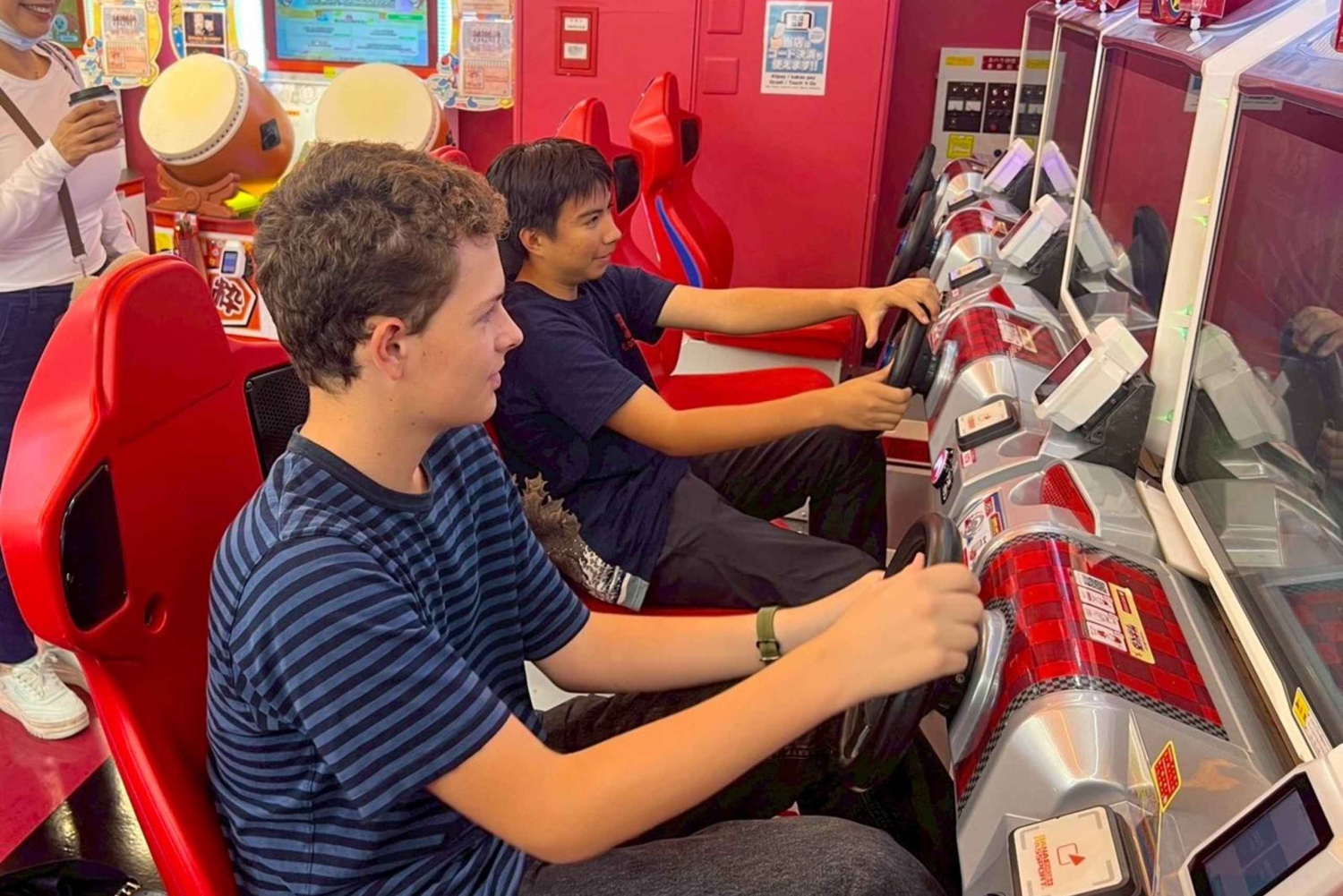 Then, jump into Japan’s famous arcade Mario Kart. Race colorful tracks, unleash items, and battle friends for first place. Whether you win a rare plush or the podium, the thrill is pure Akihabara.