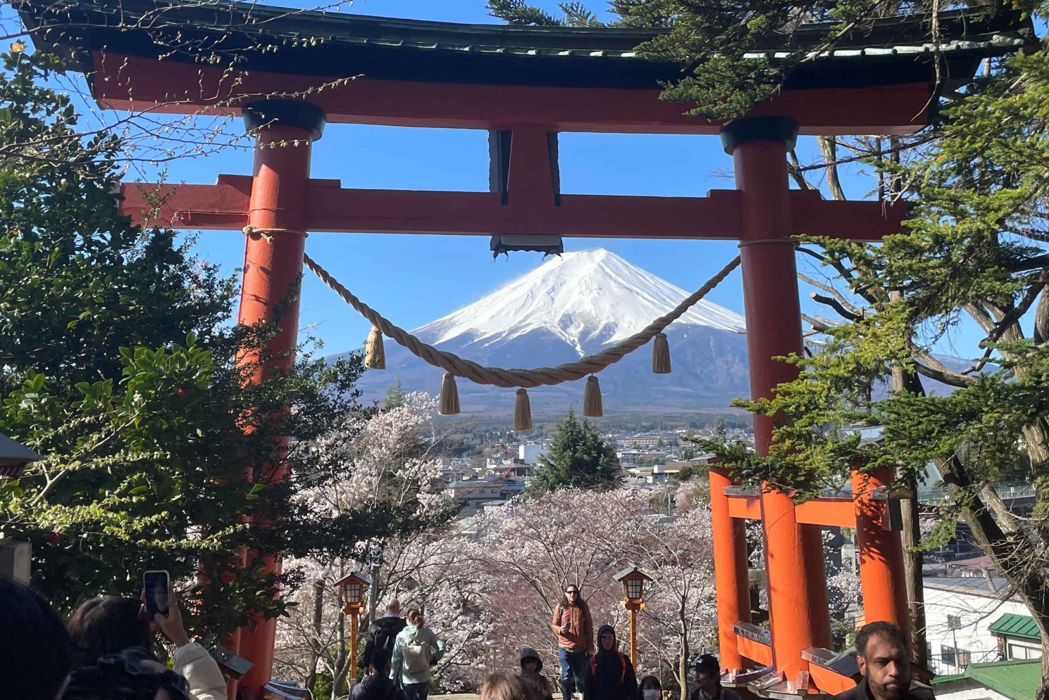 Next, head to the Arakura Sengen Shrine, famous for its breathtaking view of Mt. Fuji framed by the picturesque Chureito Pagoda. Climb the steps to take in a sweeping panoramic view that showcases the natural beauty of Japan.