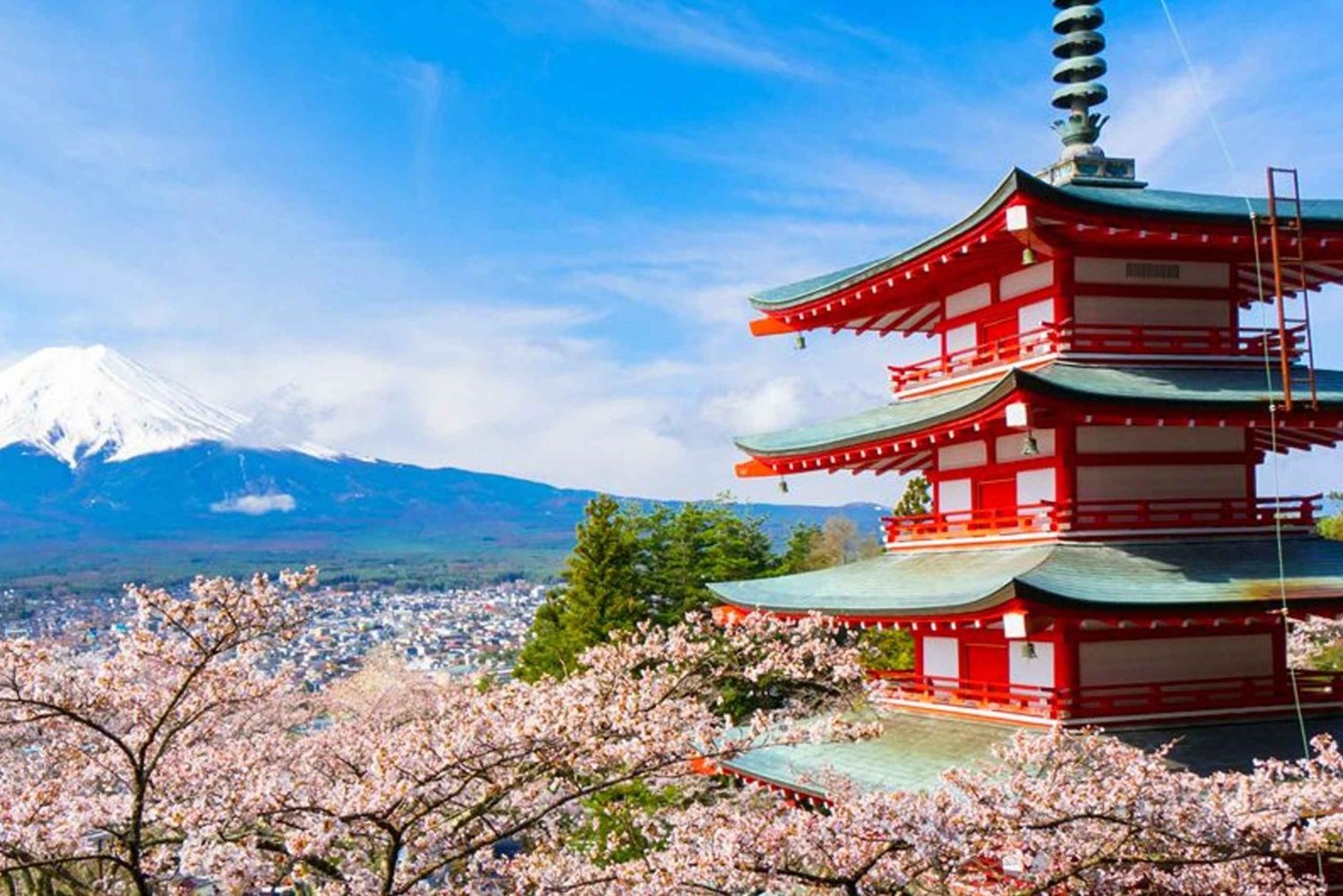Capture stunning reflections of Mount Fuji at Lake Yamanaka, visit the famous Higashikawa Clock Shop & Lawson Store, explore Asama Park, and discover Lake Kawaguchi’s beauty—all from Tokyo!